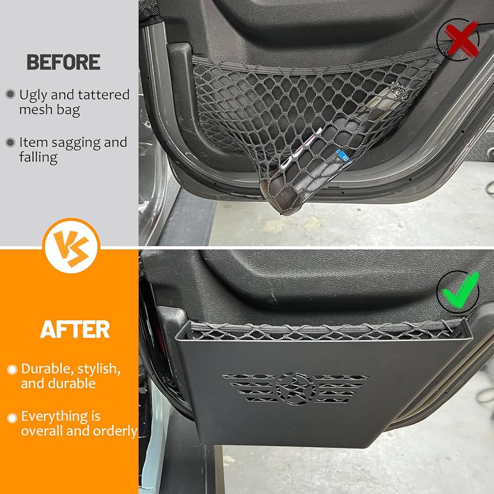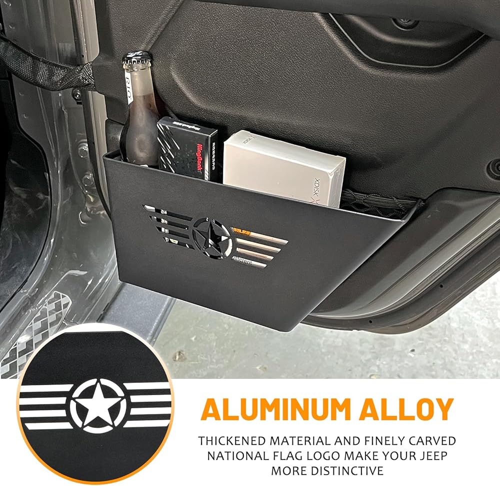 • 【FUNCTION】The door storage pockets are designed to add some additional storage to the interior of your Jeep to store some little stuff