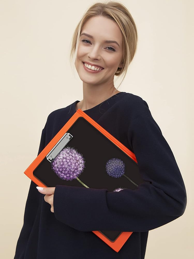 • [مادة فاخرة وصناعة متقنة] - مصنوع من بلاستيك قوي عالي الجودة، سطح أكريليك شفاف شديد اللمعان يوفر منطقة كتابة سلسة، وله طلاء خاص مقاوم لبصمات الأصابع ومضاد للخدش في نفس الوقت. يحتوي المشبك المعدني المنخفض على فتحة تعليق مدمجة، مع حلقة مخفية مرنة، يسهل تخزينها عند عدم الحاجة إليها. مصممة بحواف دائرية متينة، مريحة في الإمساك، وتوفر قوة موثوقة وتدوم طويلاً.