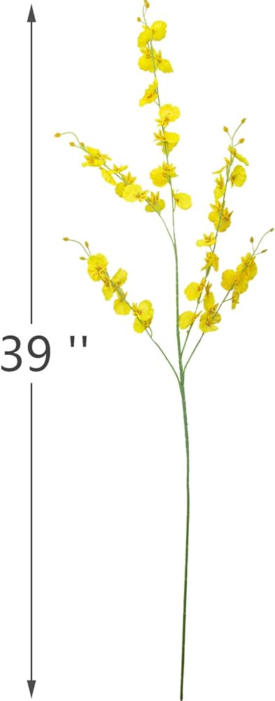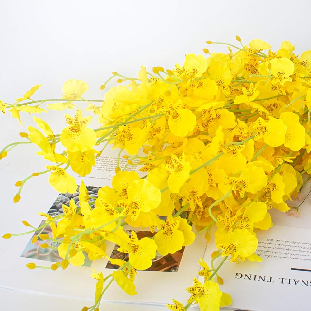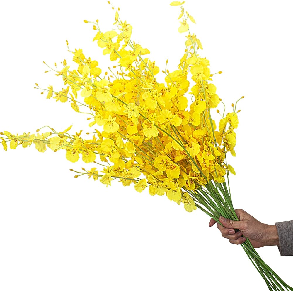 زهور الأوركيد الاصطناعية من Grunyia، زهور الأوركيد الصناعية الراقصة الحريرية، 10 قطع (كل 39 بوصة)، لتزيين الفنادق في الأماكن المغلقة والخارجية والمنزل والمكتب والحفلات (أصفر)