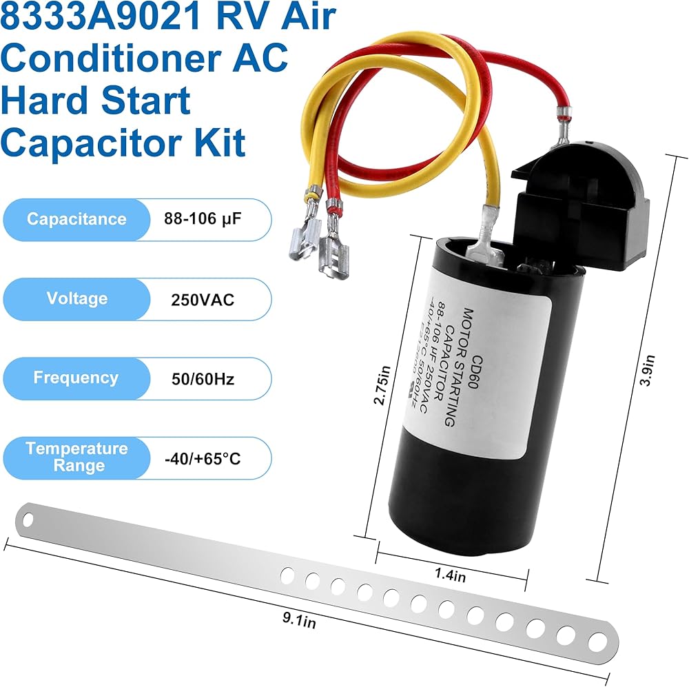 طقم البدء الصلب لمكيف الهواء 8333A9021 RV طقم بدء تشغيل مكثف مكيف الهواء مع مكثف البدء ومرحل البدء، بدء تشغيل التيار المتردد بسلاسة