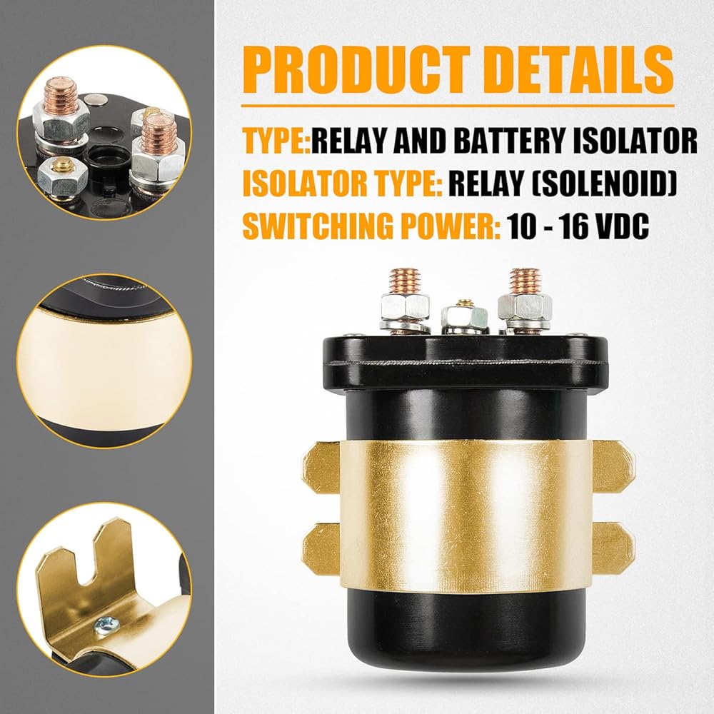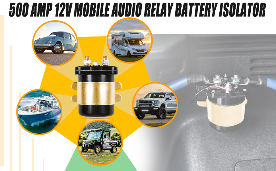 عازل البطارية: عوازل البطارية مناسبة للتطبيقات التي تحتاج إلى عزل بطاريات متعددة، مثل الصوت المحمول، والبحرية، والرياضات التي تعمل بالطاقة، وما إلى ذلك. يتم استخدامها لعزل البطاريات التي تعمل بالطاقة AV، والملاحة، وما إلى ذلك. فهي تسمح بشحن البطارية الثانية بالكامل مخصص لنظام الصوت ولا يسبب انخفاضًا في الجهد كما تفعل العوازل الشائعة. سوف يسحب المعزل أقل من 1 أمبير عند تشغيل سيارتك.