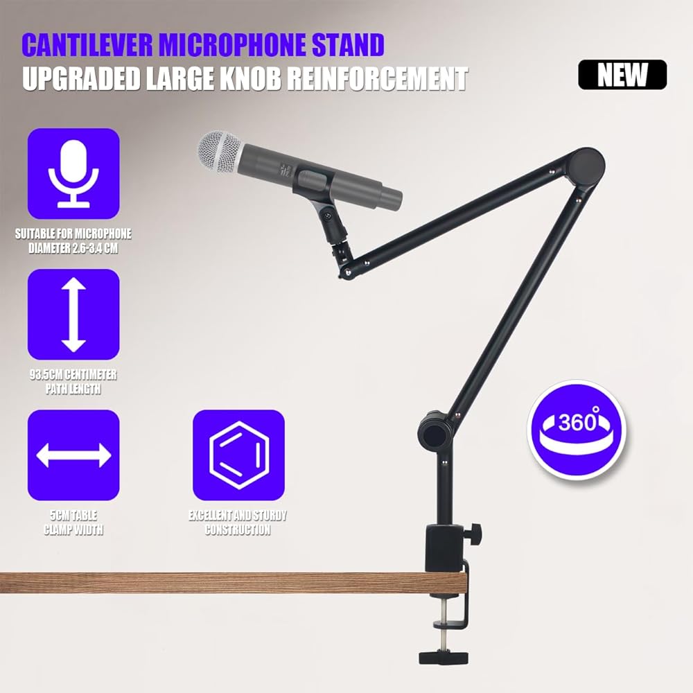 حامل ذراع الميكروفون الحمولة القصوى: حوالي 2 كجم، يمكنه ربط كرة الثلج الزرقاء وBlue Yeti ويناسب معظم الميكروفونات الموجودة في السوق. مناسب لأي متجر، واستوديو صوت Voice-Over ASMR، وتسجيل فيديو Youtube/Facebook، والبث الإذاعي، والمكتب، والطاولة، ومحطات التلفزيون، والمطاعم، ومحطة المعركة، والأداء المسرحي والعائلي، إلخ.
