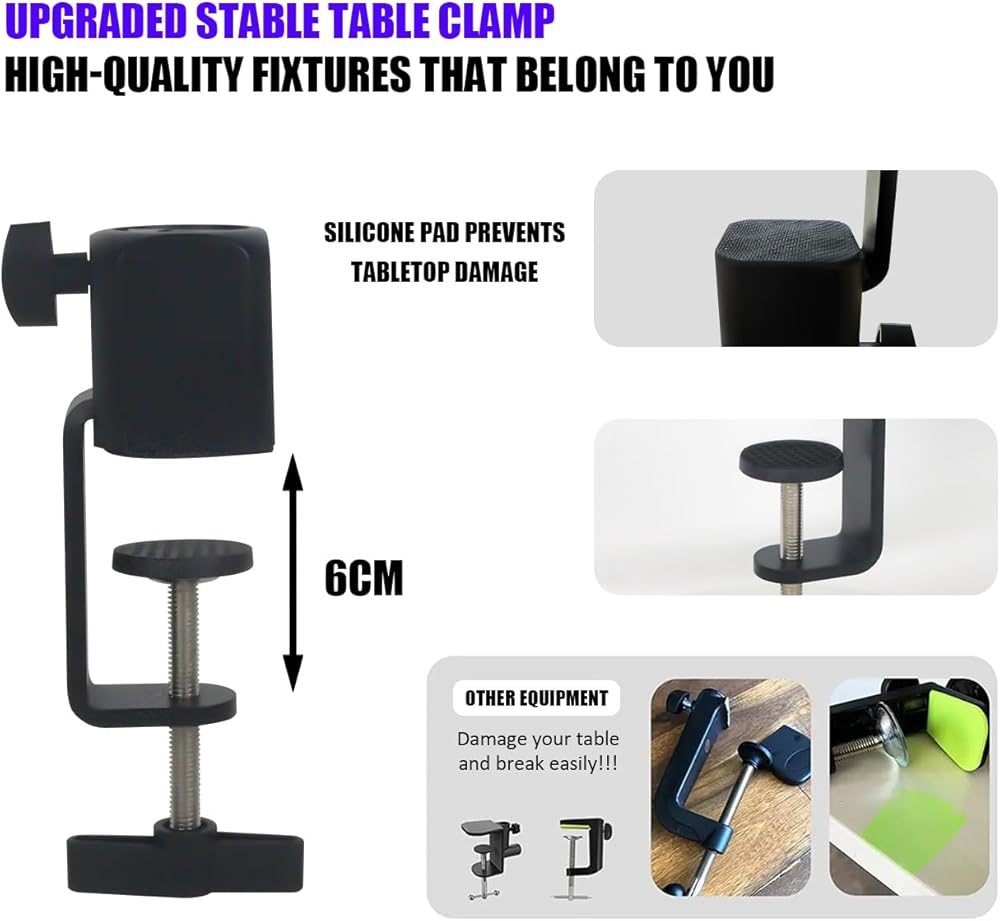 مشبك سطح المكتب المصمم حديثًا: يمكن توصيله بأي مكتب يصل سمكه إلى 8 سم ويسمح لحامل الميكروفون الخاص بك بالدوران 360 درجة.