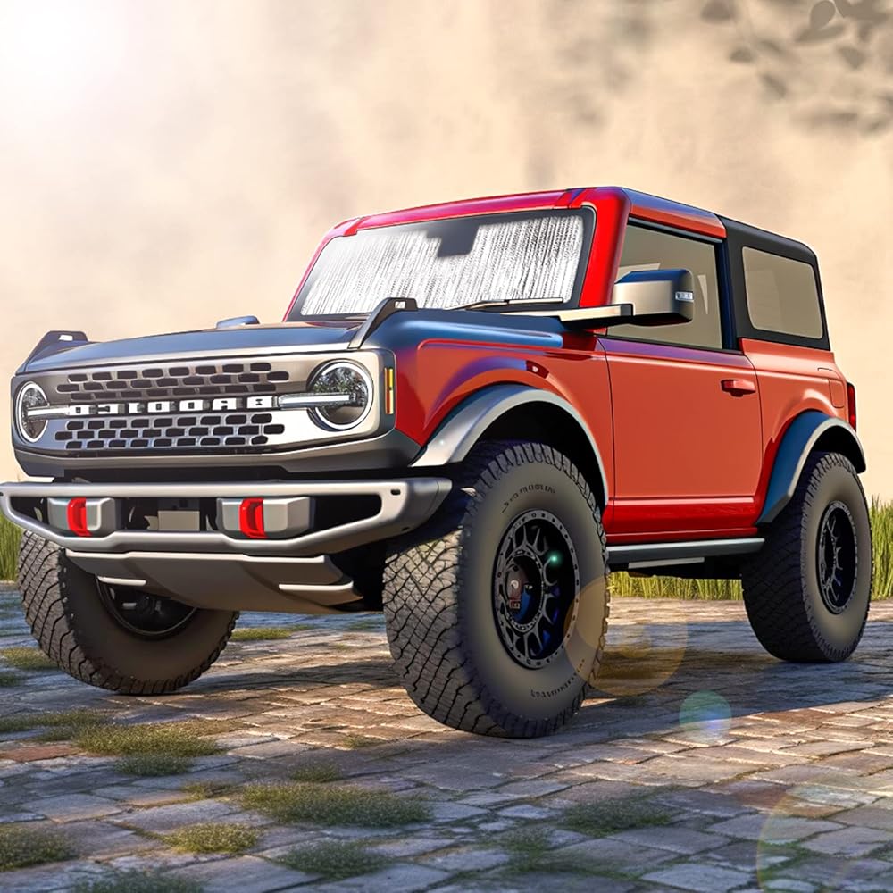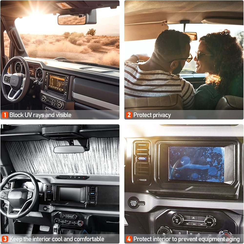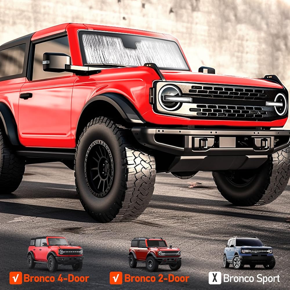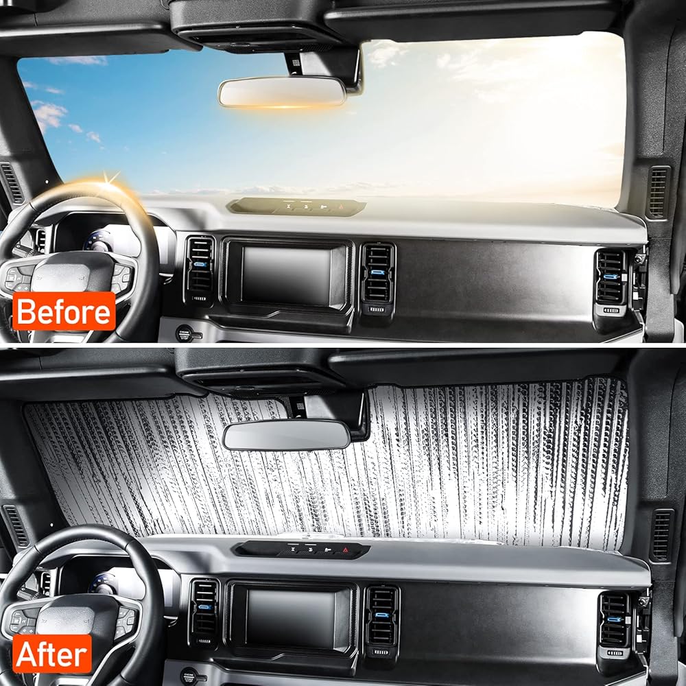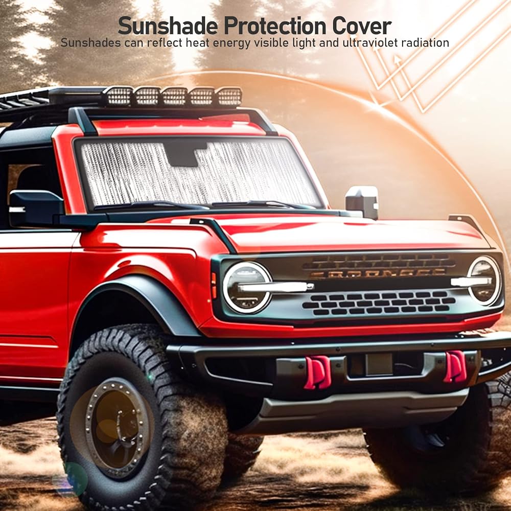 مظلات الزجاج الأمامي متوافقة مع ملحقات Ford Bronco 2021 2022 2023 2/4 باب، مظلة النافذة الواقية من الشمس كتلة الشمس تبقي سيارتك باردة ومحمية من الداخل (لا تناسب رياضة برونكو)