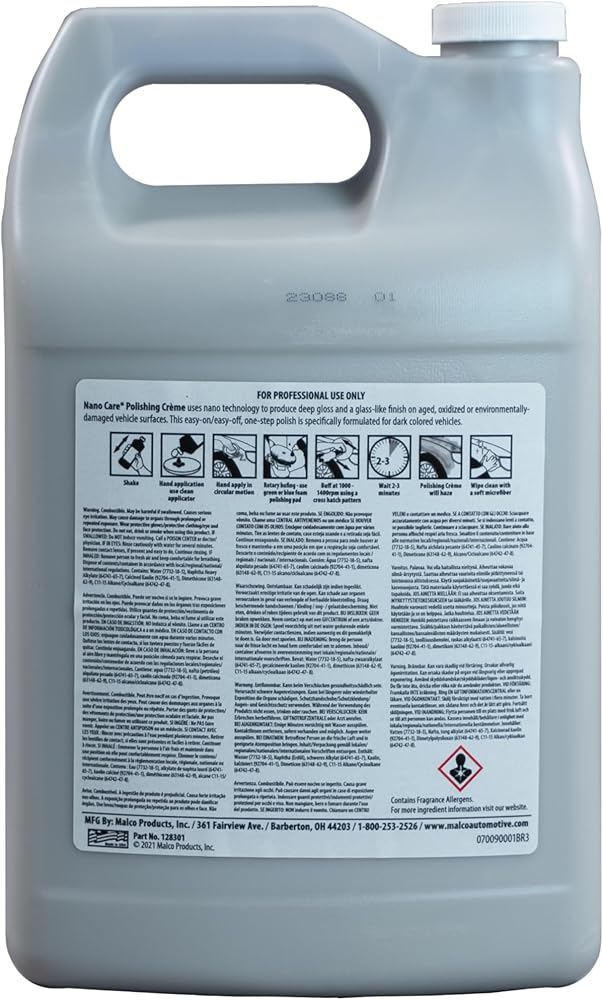 كريم تلميع مالكو نانو كير - ينتج لمعانًا عميقًا على أسطح المركبات المؤكسدة أو المتضررة بيئيًا / 1 جالون (128301)