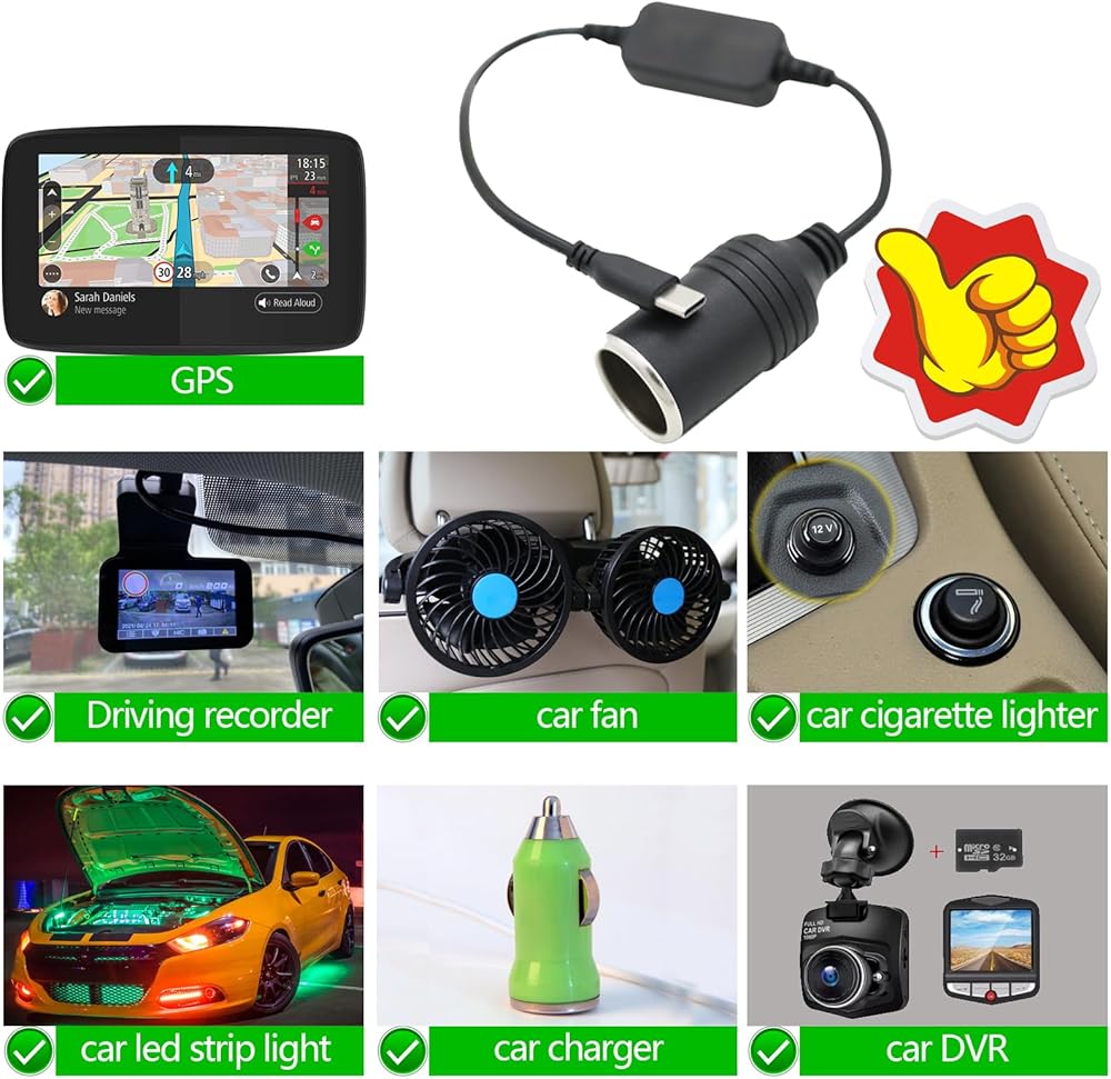 محول سيارة USB C مقبس ولاعة السجائر 12 فولت كابل ذكر 1 قدم إلى قابس محول الطاقة لمروحة السيارة، كاميرا داش، نظام تحديد المواقع العالمي، الكلب الإلكتروني، شريط إضاءة LED للسيارة، شاحن سيارة...