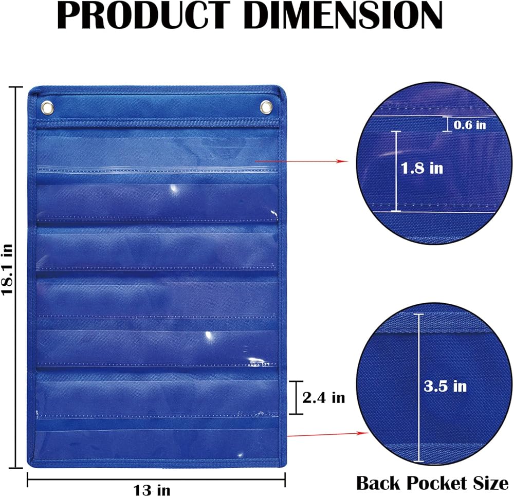 مخطط جيب محمول للفصل الدراسي - مخططات جيب صغيرة للفصل الدراسي بقياس 18.5 بوصة ارتفاع × 13.19 بوصة طول تحتوي على سبع حقائب أفقية، وتوجد حقيبة تخزين كبيرة في الخلف، بما يكفي لتلبية احتياجاتك. يمكنه دعم شرائط الجملة للمعلمين بطول 11.6 بوصة