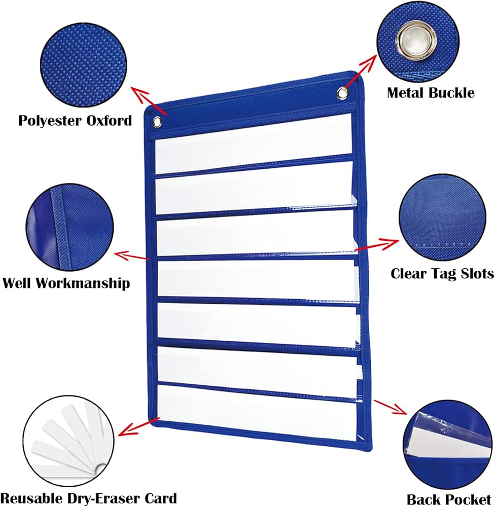 مخطط جيوب متين - الجيوب الشريطية المستخدمة في الفصل الدراسي مصنوعة من قماش أكسفورد البوليستر عالي القوة والمقاوم للتمزق. يسمح لك فيلم PET عالي الشفافية برؤية الجملة في الحقيبة. إنها صغيرة الحجم لذا فهي لا تشغل مساحة كبيرة.