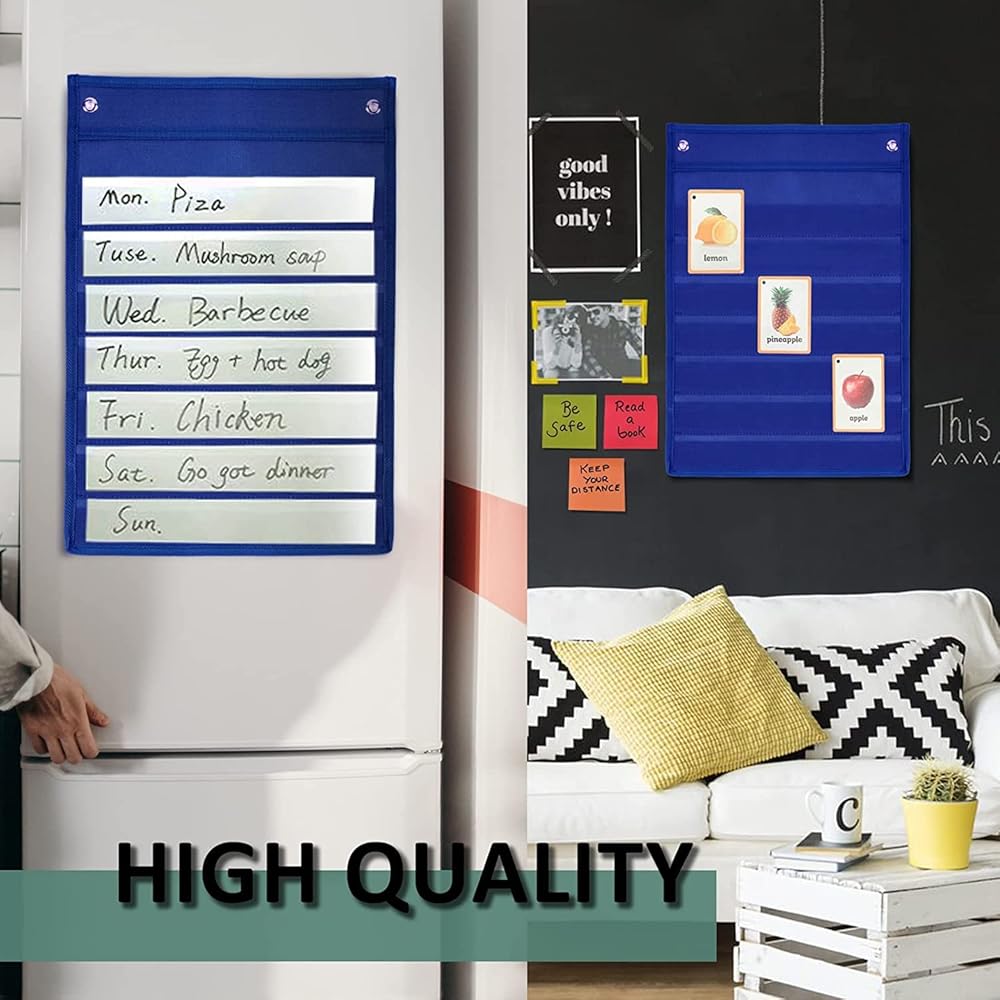 جدول زمني متعدد الأغراض للأطفال - تأتي مخططات الجيب مع نوعين من الخطافات التي تحتوي على ثلاث طرق للتعليق. قم بالتعليق على السبورة البيضاء أو أبواب الثلاجة باستخدام الشريط الموجود في الخلف. والخطافات في حالة رغبتك في نقلها لاحقًا.