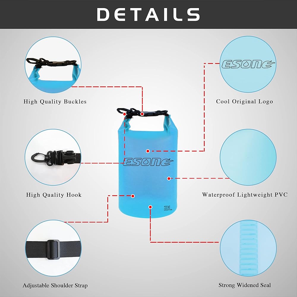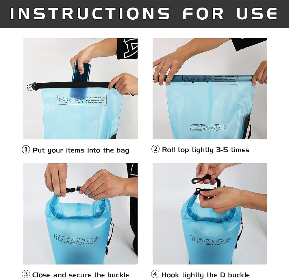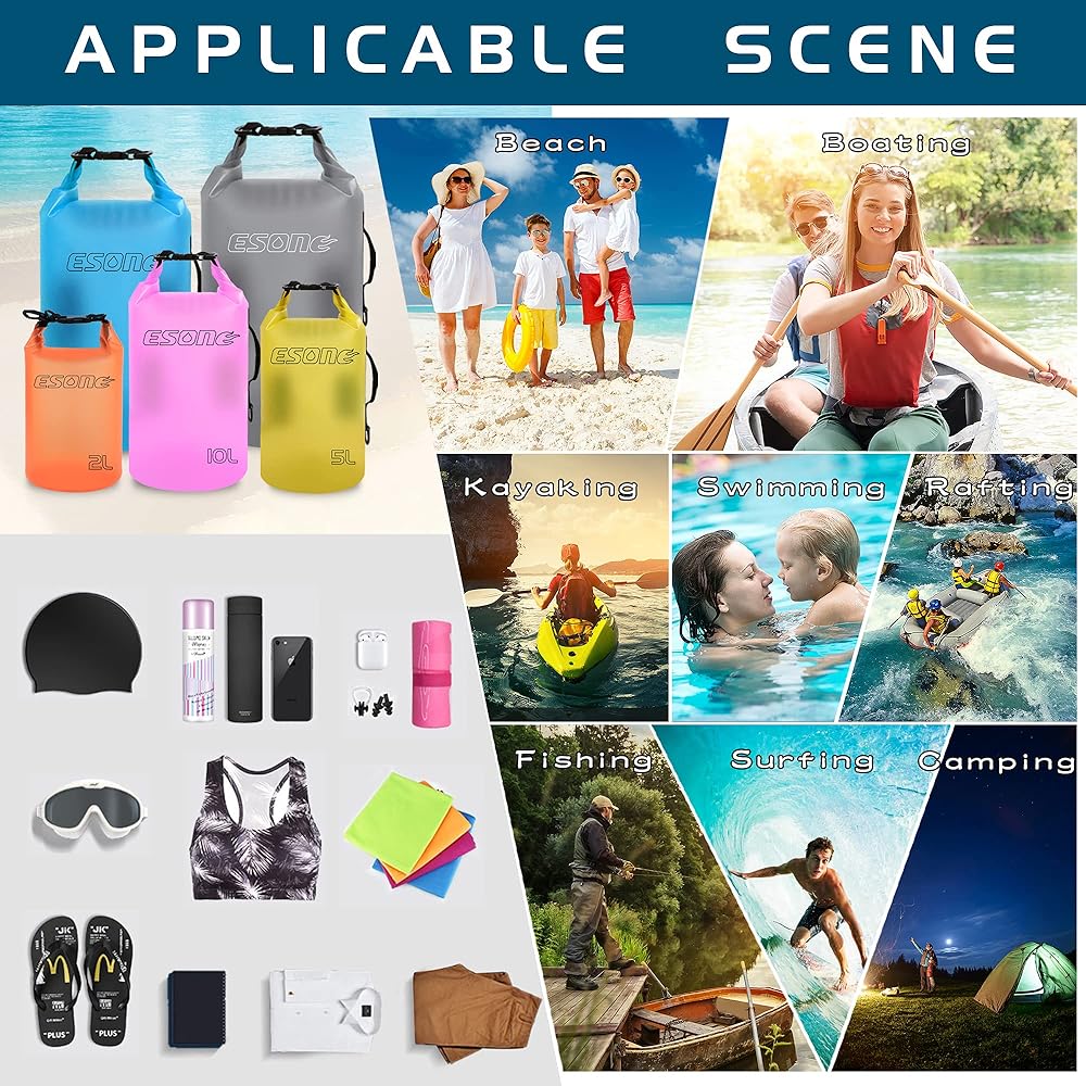 【صديقة للبيئة ومقاومة للأوساخ】: مصنوعة من مادة PVC عالية الجودة وصديقة للبيئة، لذا فإن حقيبة ESONE الجافة غير سامة وآمنة وخفيفة الوزن ومتينة. وحزام عوامة السباحة الخاص بنا مصنوع من النايلون، الذي يتميز بصلابة ممتازة ومقاومة للتآكل. تناسب حقيبتنا الجافة أيضًا العديد من الرياضات المائية الأخرى، مثل السباحة وركوب القوارب والتجديف وركوب الأمواج والتجديف والتجديف وصيد الأسماك. لذلك أعتقد أنه إذا اخترت حقيبتنا الجافة فستكون الرفيق المثالي لك.
