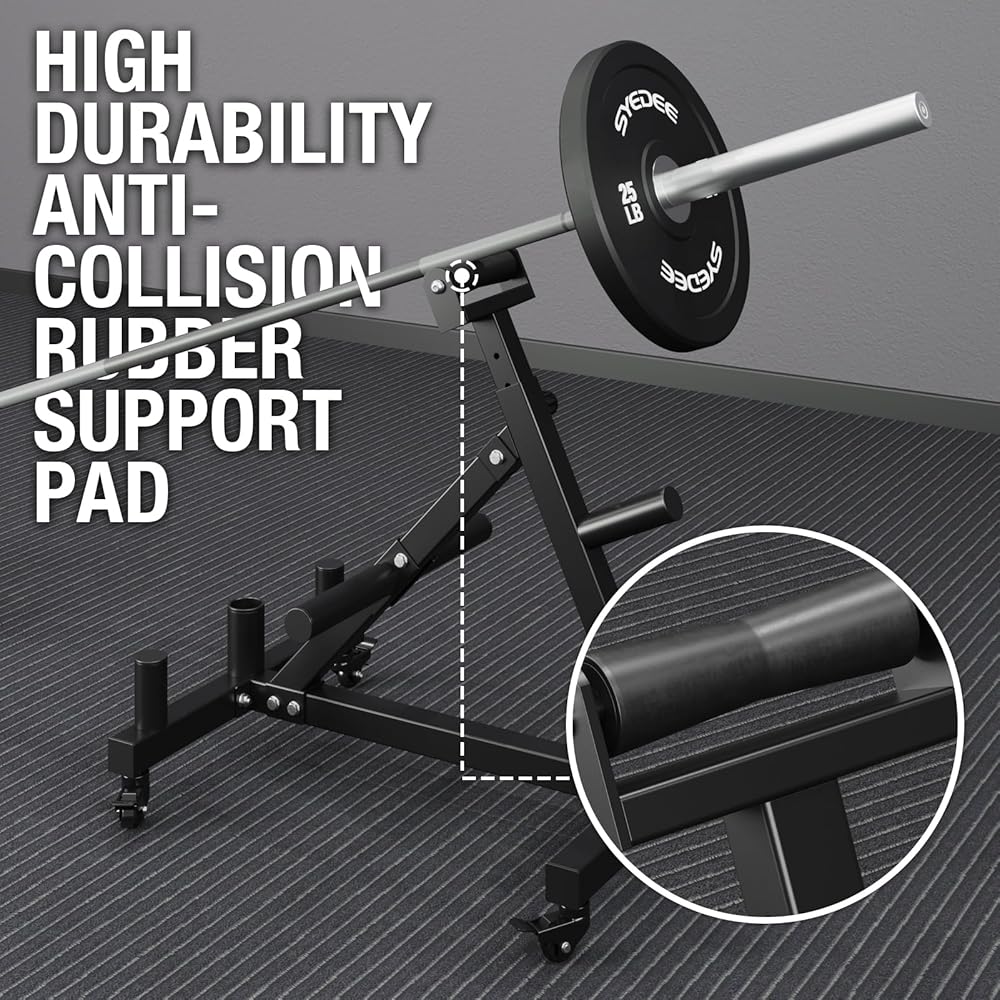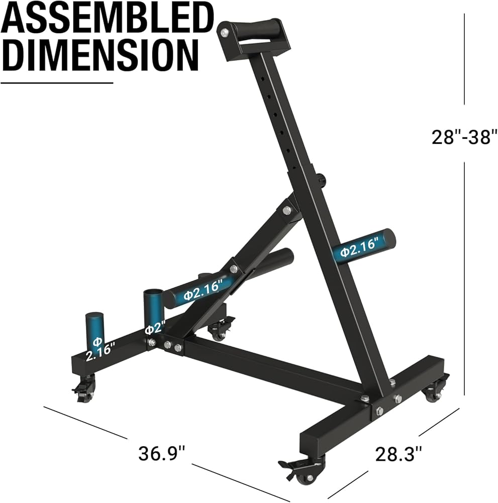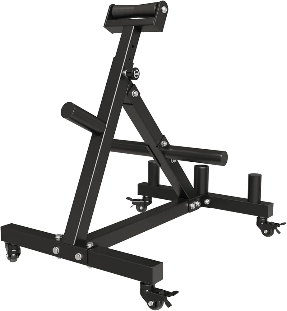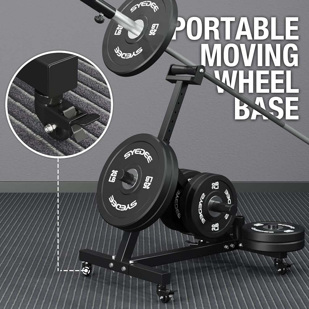 [تنقل مريح] حامل للحديد ذو العجلات، مما يوفر حركة مريحة لإعادة وضع المعدات بسهولة عند الضرورة. يضمن إبزيم القفل الموثوق به على العجلات بقاء الحامل ثابتًا أثناء التدريبات.