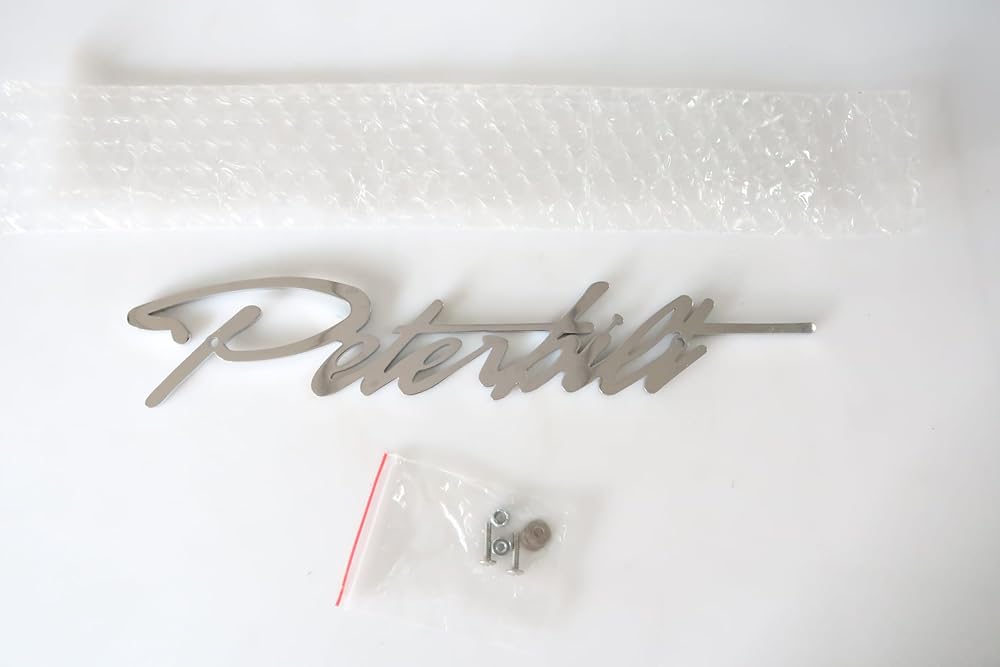 Custom Stainless Logo Name Emblem Plate Fit for Peterbilt Side Frond of Hood Accessory Grille Fender. There are mounting hardware included. The surface process: polished and top quality workmanship.