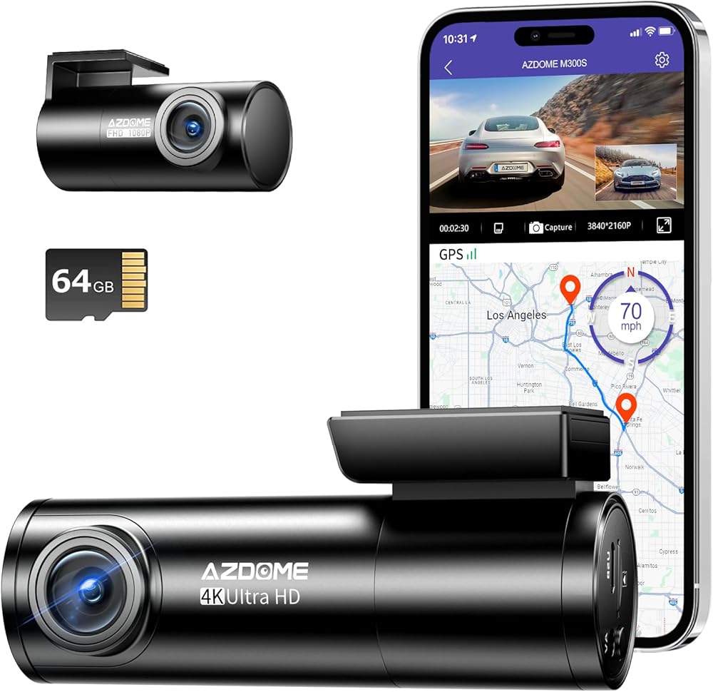 بطاقة مجانية بسعة 64 جيجابايت: تأتي كاميرا Dash AZDOME M300S 4K مع بطاقة SD صغيرة مجانية بسعة 64 جيجابايت. لا يحتاج المستخدم إلى شراء بطاقة SD بشكل منفصل.