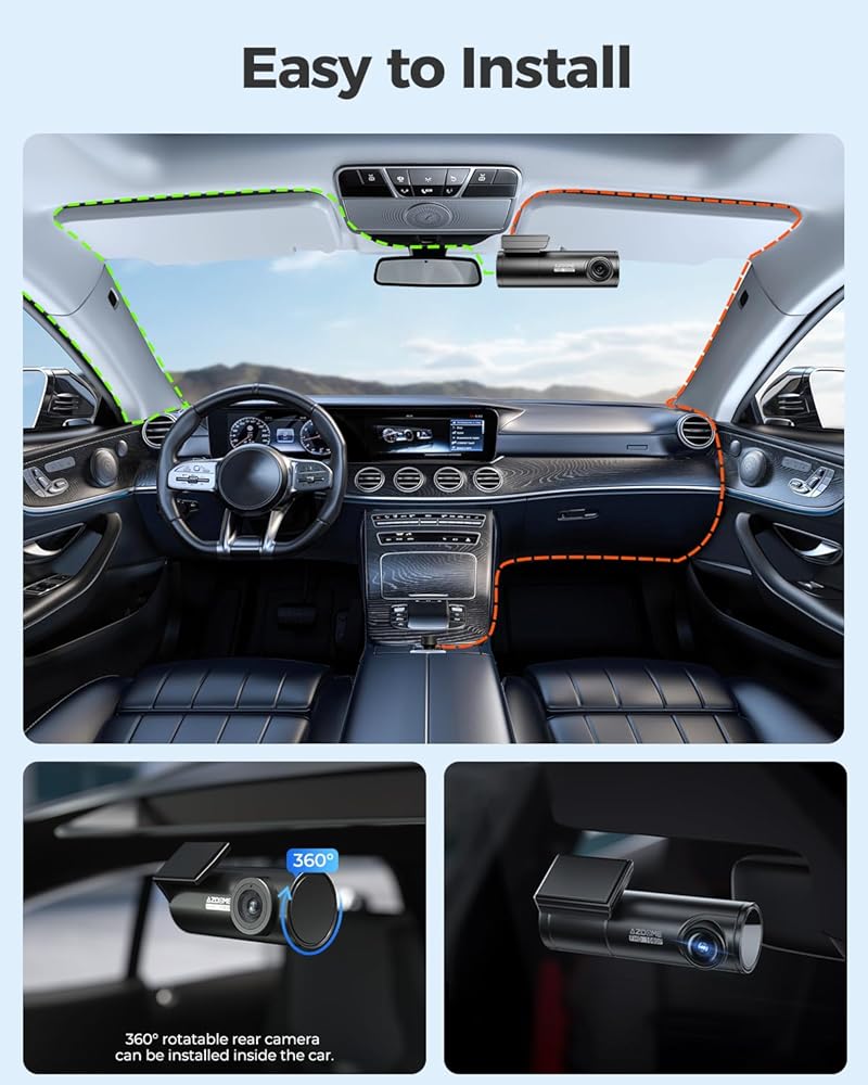 زاوية واسعة 170 درجة: كاميرا داش كام مزدوجة 4K تدعم عدسة زاوية واسعة للغاية 170 درجة. يمكن لكاميرا Dash التقاط تفاصيل ظروف الطريق.