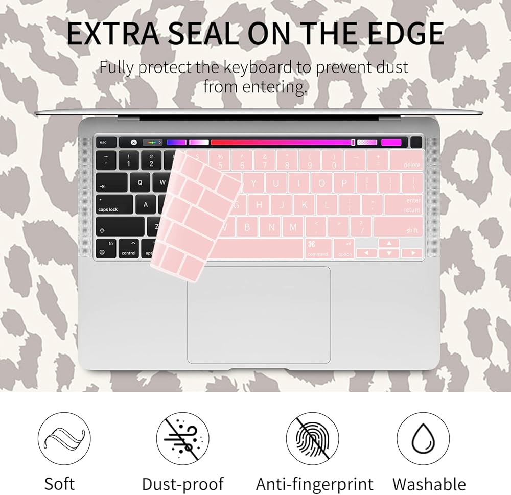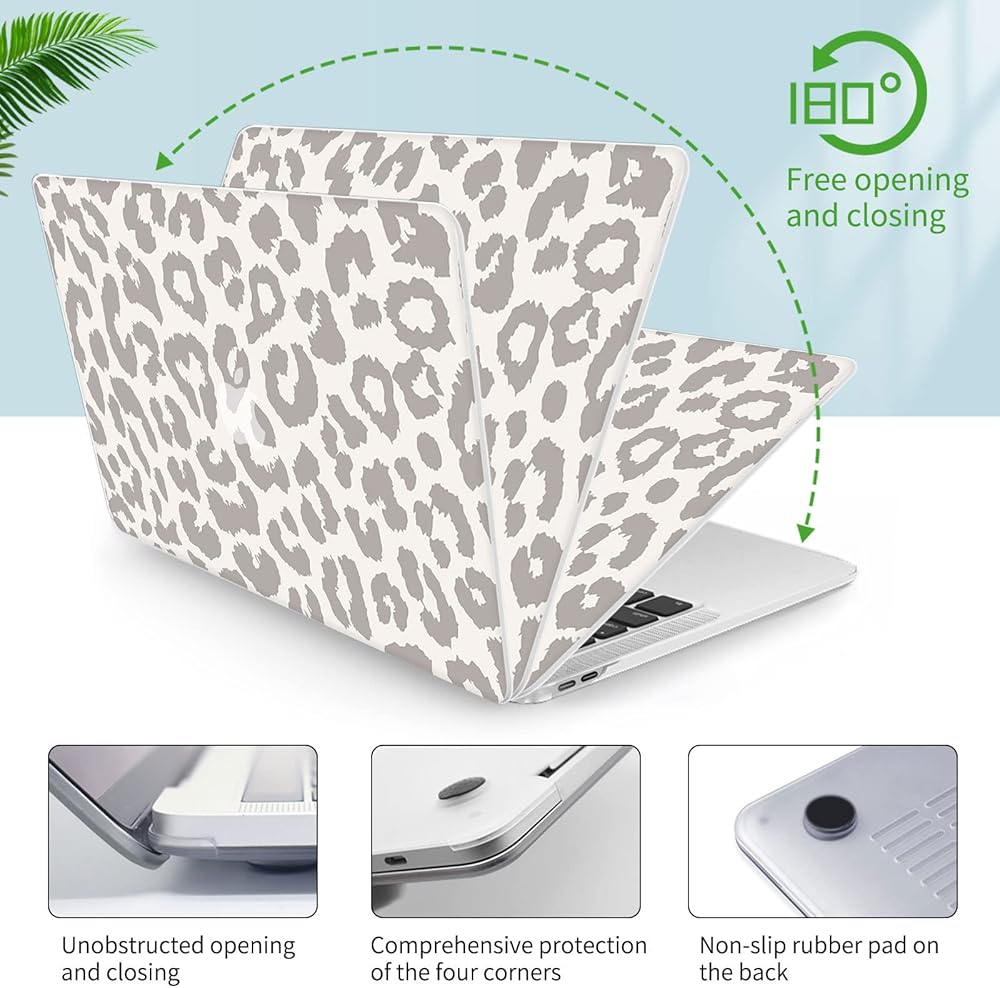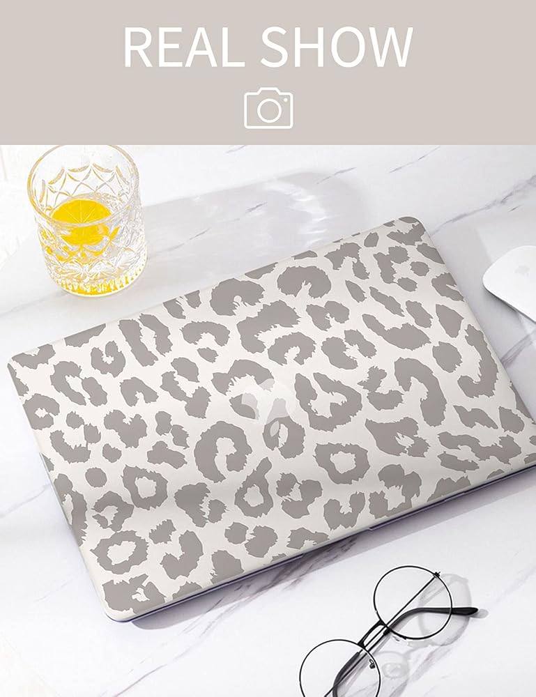 Seorsok متوافق مع حقيبة الكمبيوتر المحمول MacBook Pro مقاس 13 بوصة M2 2022 إصدار 2020 M1 A2338/A2251/ A2289 حافظة حماية بلاستيكية صلبة وغطاء لوحة مفاتيح، طباعة جلد الفهد