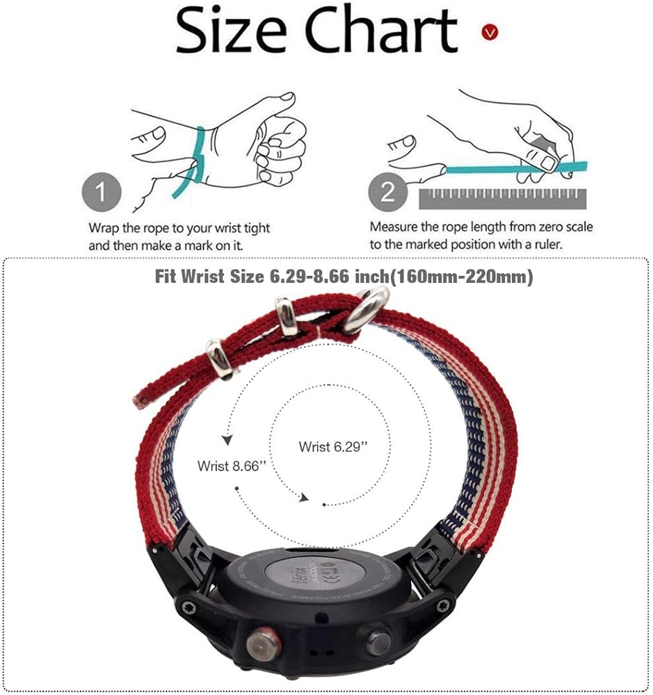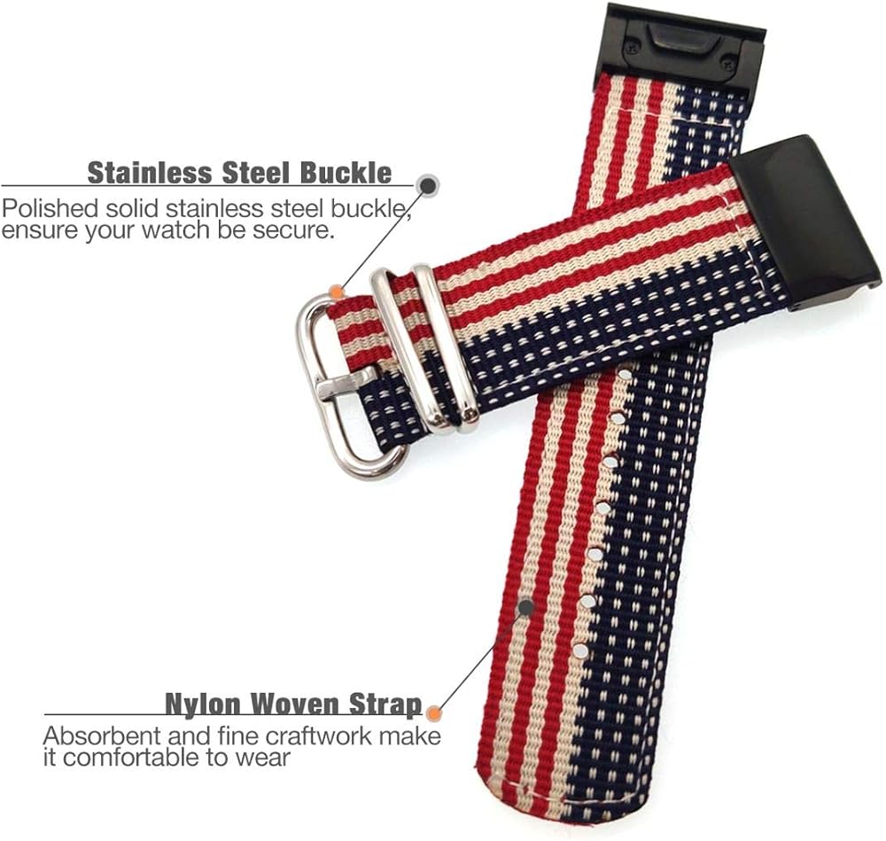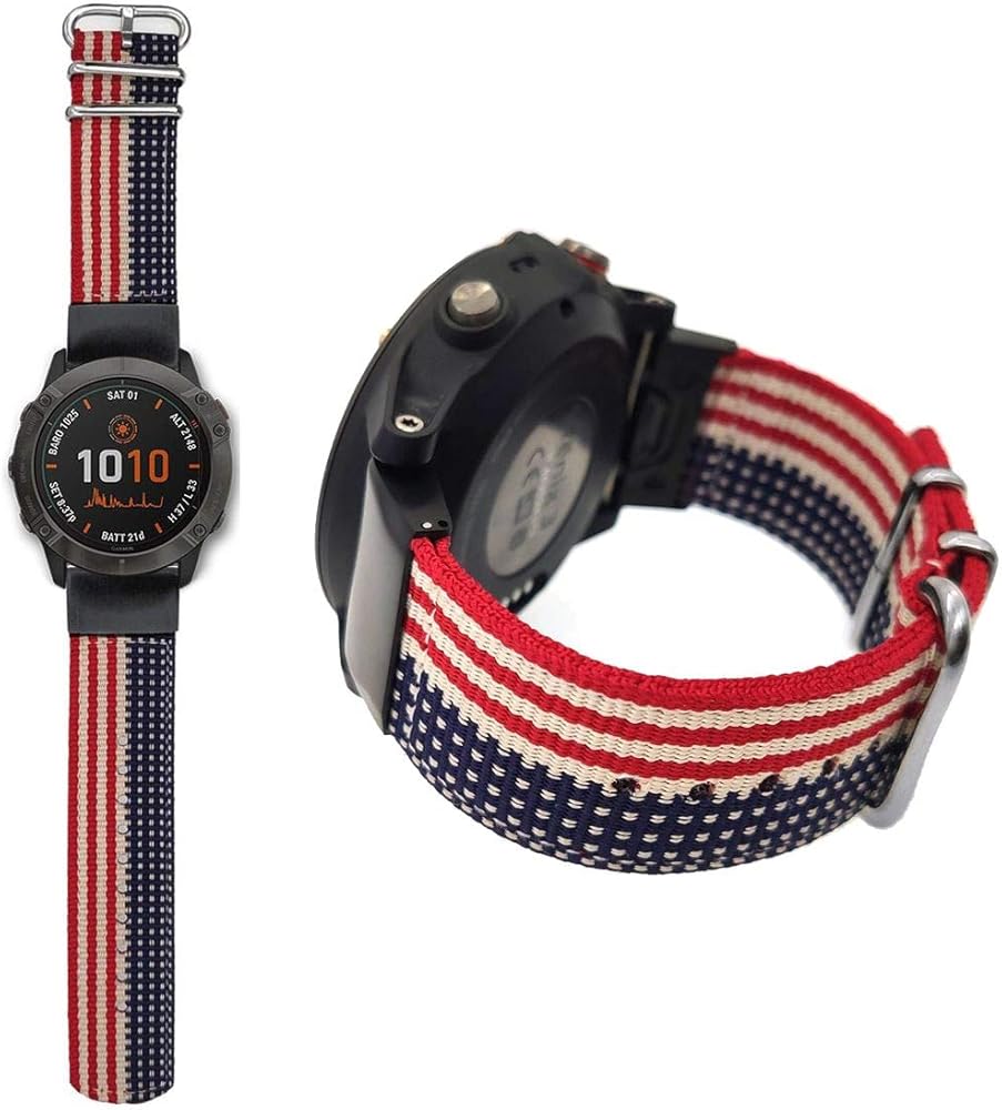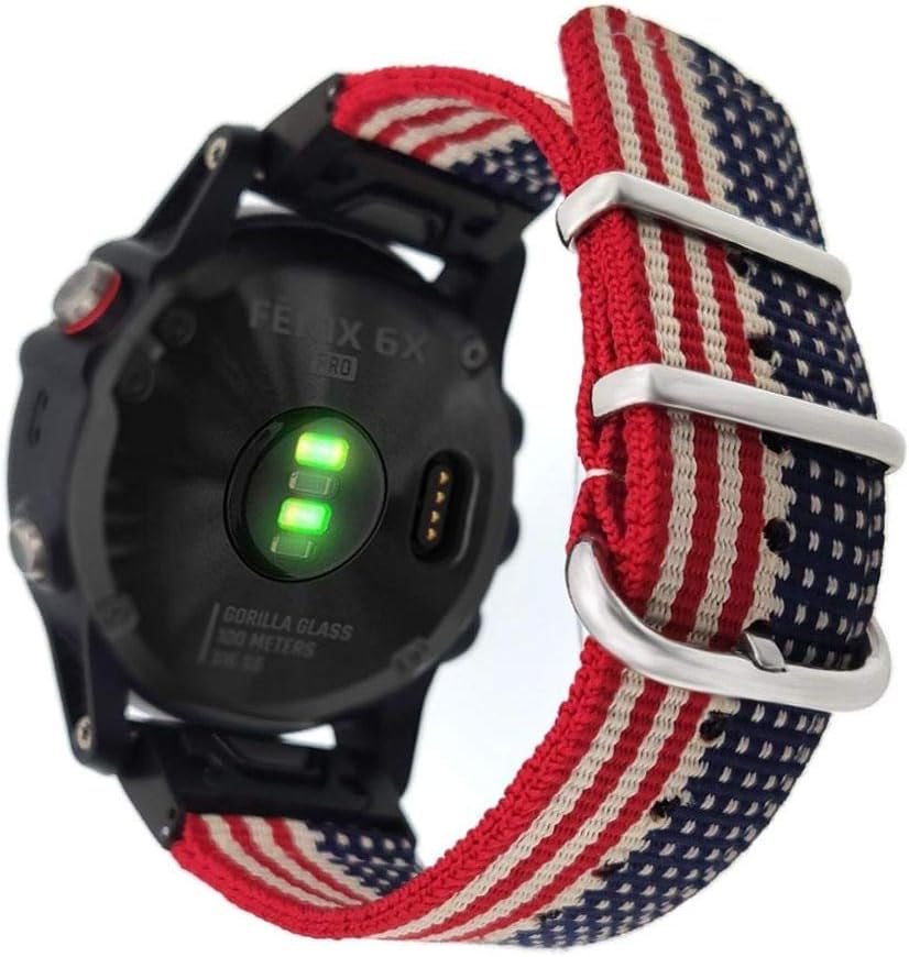 سوار ساعة 26 ملم لـ Garmin Fenix ​​6X Pro/Sapphire، حزام معصم من النايلون المنسوج بنمط العلم الأمريكي مع مشبك من الفولاذ المقاوم للصدأ لـ Garmin Fenix ​​5X/Fenix ​​5X Plus، Fenix ​​3، متعدد الألوان