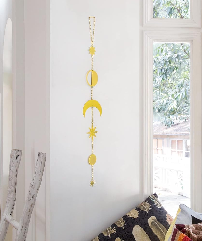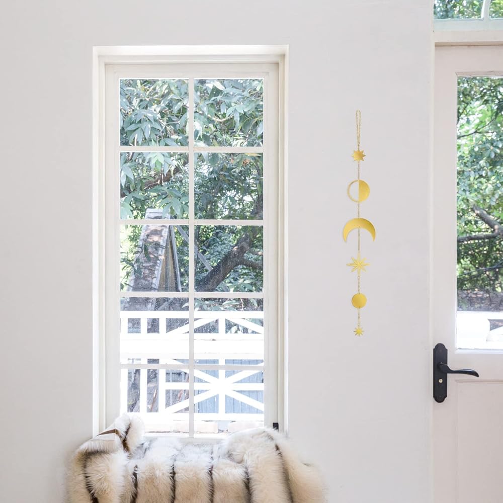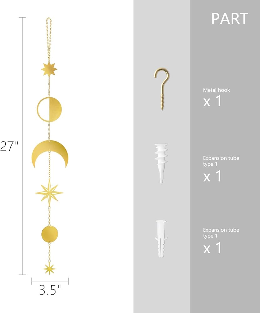 • مصنوعة من أقمار معدنية ونجوم وسلاسل حديدية. تأتي مع خطاف وأنبوب توسيع، سهلة التركيب والتعليق على الحائط. مثالية للمساعدة في إضفاء إشراقة على أي غرفة في منزلك!