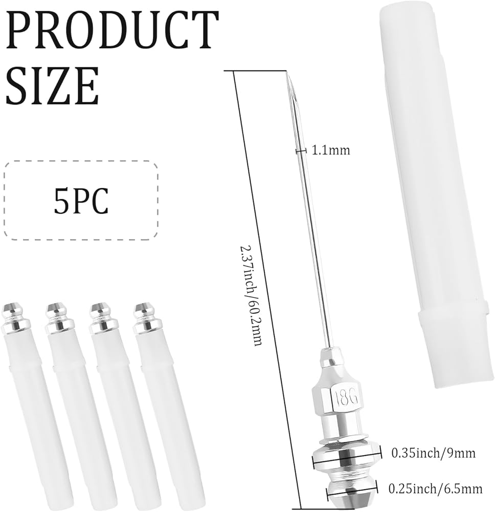 18 Ga. 1-1/2 Inch,5 Pcs Tempered Stainless Steel Narrow Grease Needle for Grease Gun
