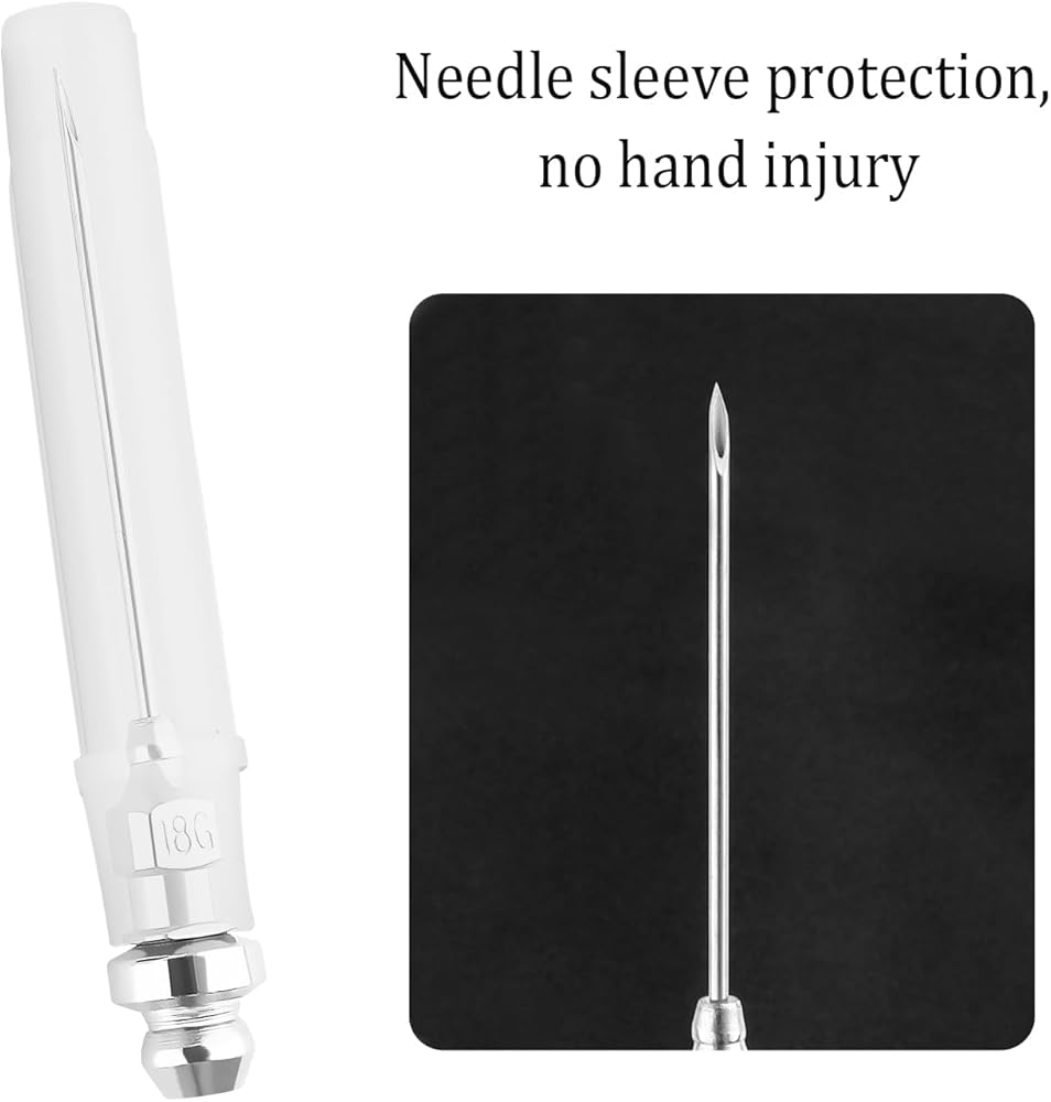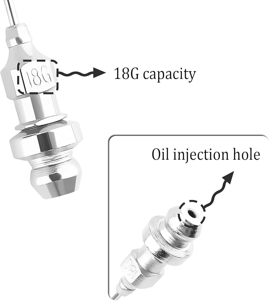 -The silver 18G 1-1/2" long stainless steel grease syringe needle tip with protective plastic cap ensures that it is safely at your side.