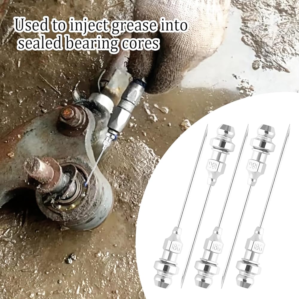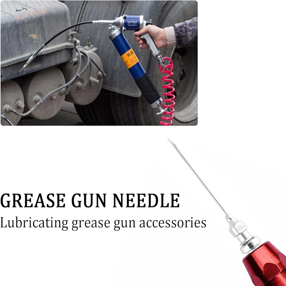 -Highly effective grease gun needle tip for even application of grease to hard to reach closed grease fittings, bearings, etc.