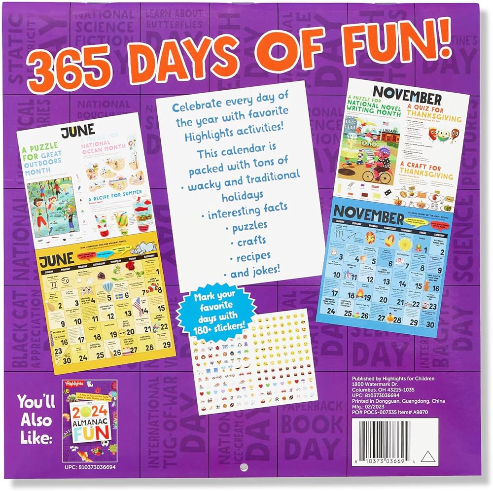 عام يستحق المرح - هذا التقويم المصاحب لأبرز الأحداث لعام 2024 تقويم المرح مليء بالحقائق والأنشطة للعام القادم؛ سيستمتع الأطفال الذين تتراوح أعمارهم بين 6 و12 عامًا بفحصه كل يوم لقضاء العطلات (الجدية والسخيفة)، والحقائق الرائعة والمزيد