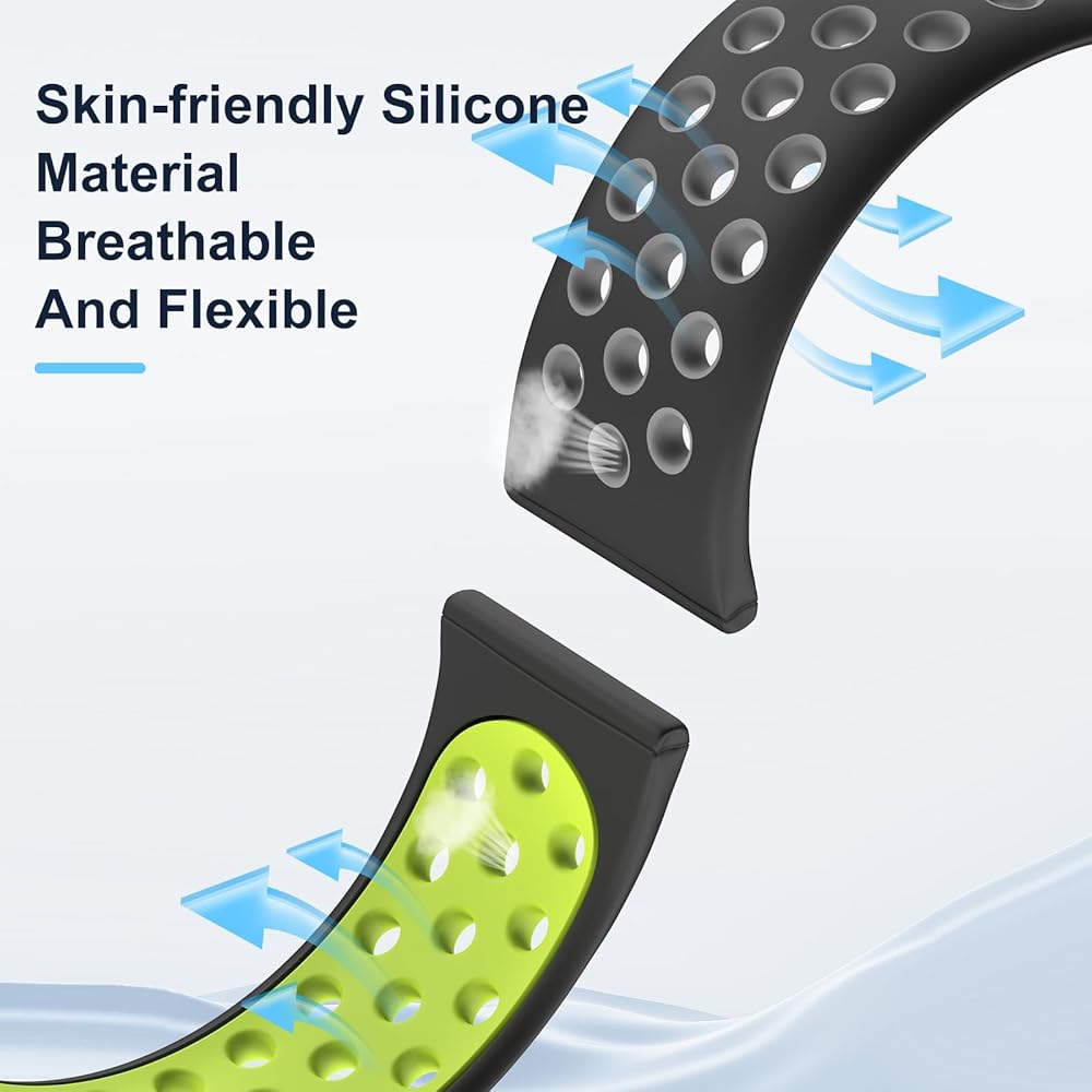 استبدال السيليكون الناعم Versa 4 Bands للرجال: بديلنا الرياضي المتوافق مع fitbit Sens 2 Bands للرجال مصنوع من مادة مطاط السيليكون عالية الجودة والصديقة للبيئة والمضادة للحساسية، ومصمم بفتحات هواء، مريح ومسامي، ومقاوم للماء وخفيف الوزن. تتميز أساور المعصم الخاصة بنا بأنها متينة ومرنة وعديمة الرائحة وصديقة للبشرة، وسوف تحبها بالتأكيد!