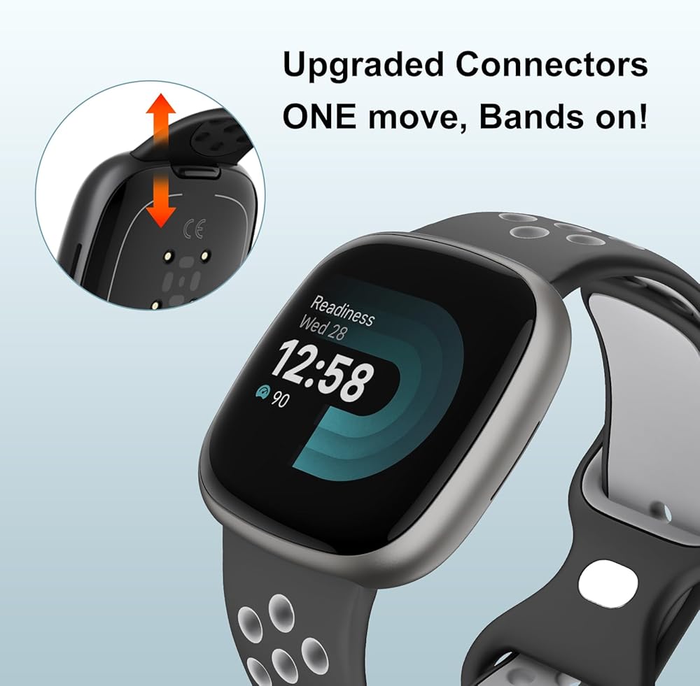 أحزمة تثبيت بدون جهد للنساء والرجال: كل سوار معصم رياضي متوافق مع أحزمة فيتبيت سينس 2 للرجال والنساء يأتي مع موصلين معدنيين متينين على كل جانب من السوار، متين وآمن، يتصل بسلاسة بواجهة ساعة فيرسا 4/سينس 2 الخاصة بك، ويحمل أشرطة حواسك ثابتة في مكانها حتى أثناء ممارسة التمارين الرياضية الشاقة. شريك لطيف عند ممارسة الرياضة أو أثناء وقت الفراغ.