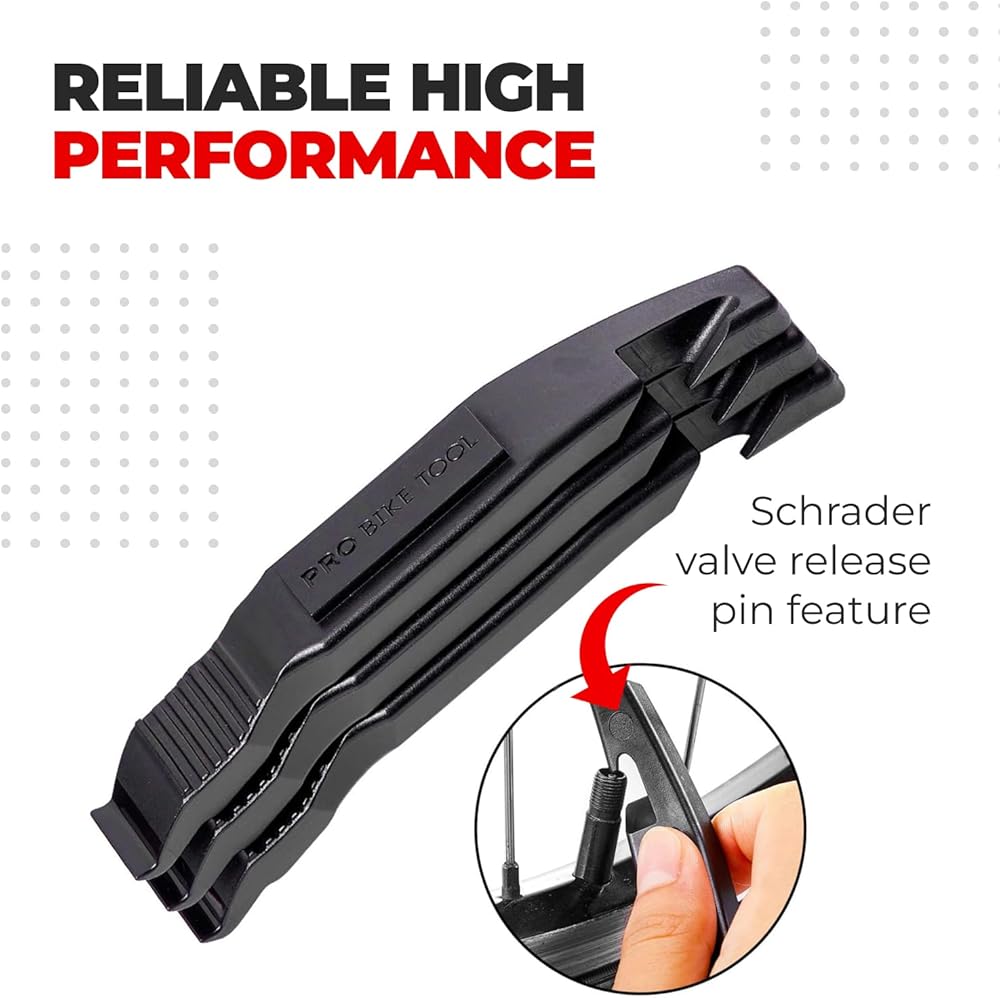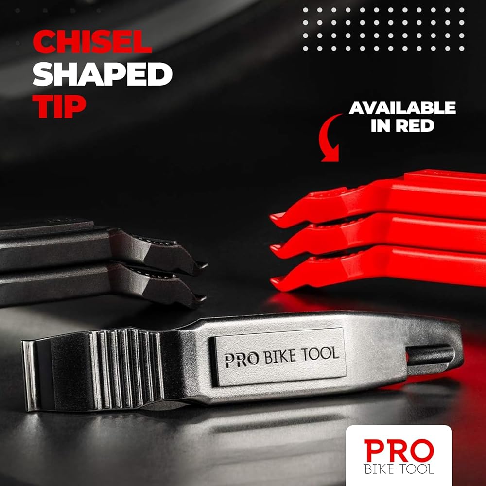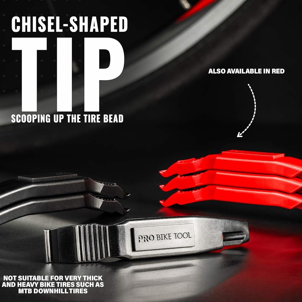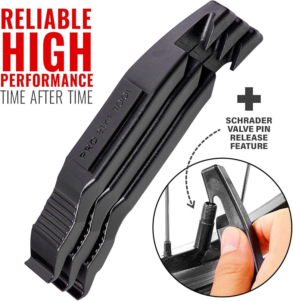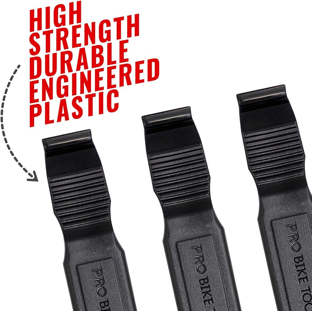 رافعات إطارات الدراجة من PRO BIKE TOOL مكونة من 3 قطع - أداة إزالة الإطارات القوية وطويلة الأمد لإطارات الطرق أو الدراجات الجبلية (MTB) - رافعة إطار الدراجة لإصلاح واستبدال الإطارات المسطحة (أسود)