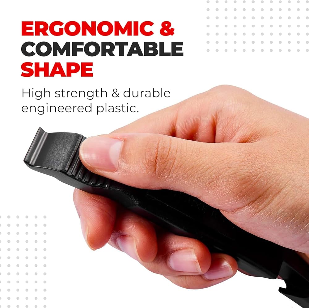 مريح في الاستخدام - يضمن الشكل المريح لرافعة الإطار وضعها بشكل مريح في اليد عند إزالة الإطار من الحافة. تتميز الرافعات أيضًا بميزة "المسافة البادئة" لإبهامك، مما يمنحها شعورًا رائعًا في اليد عند استخدامها.