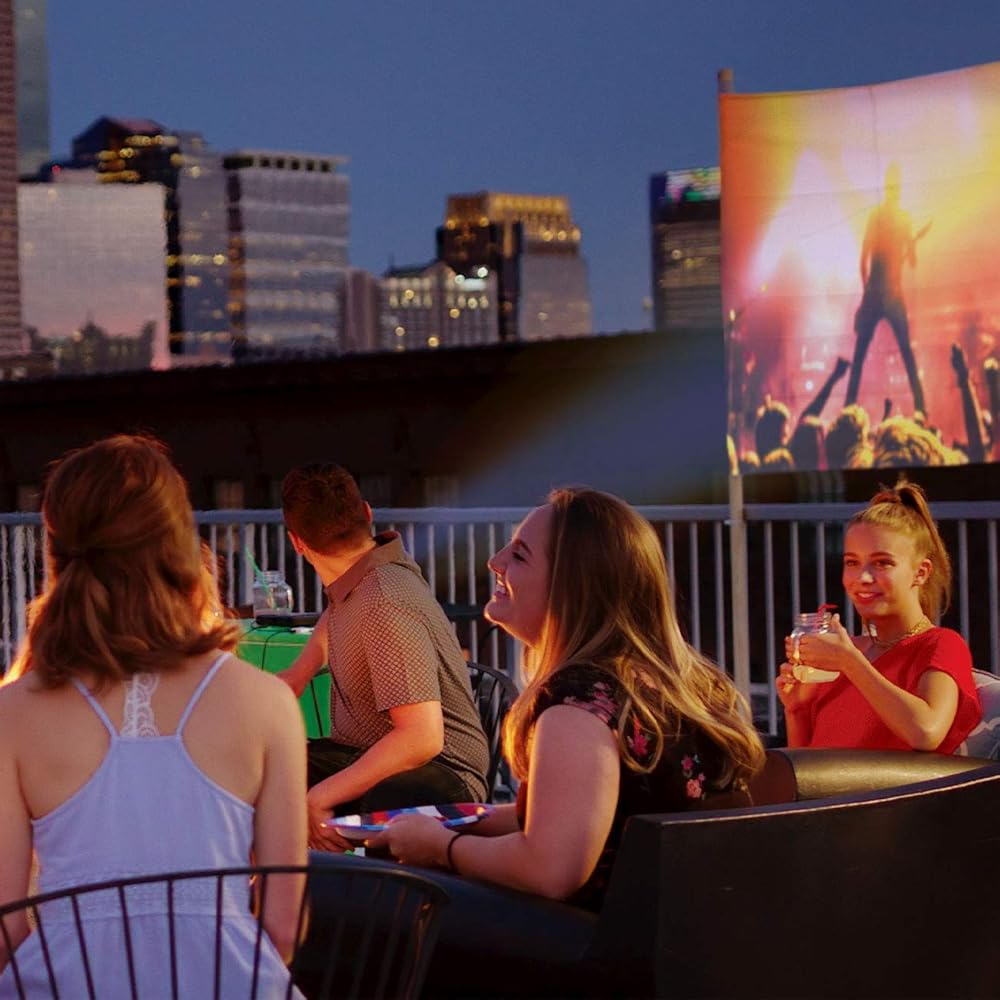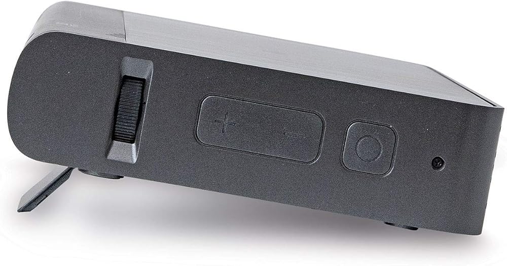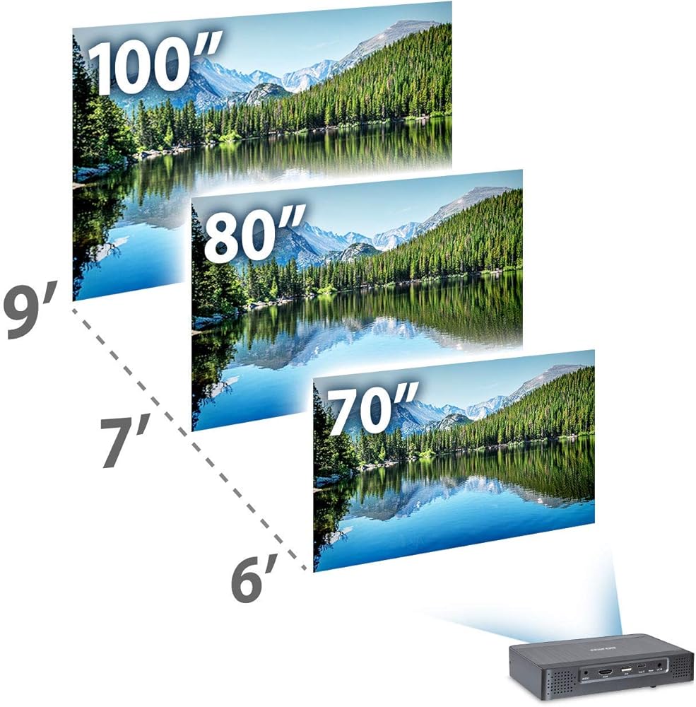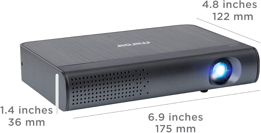 - جهاز عرض 1080 بكسل خفيف الوزن ومحمول: 6.9 بوصة × 4.8 بوصة × 1.4 بوصة، 27.5 أونصة. تعمل بالبطارية، ما يصل إلى ساعتين من وقت العرض