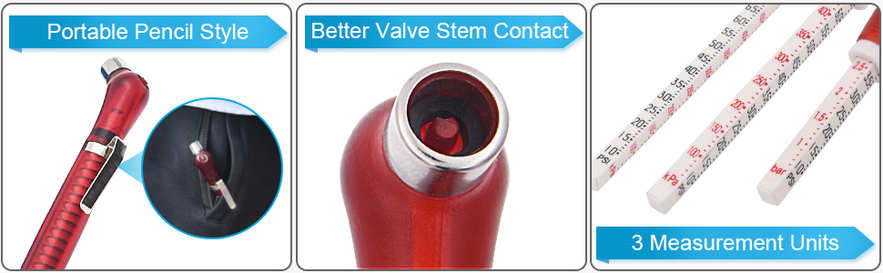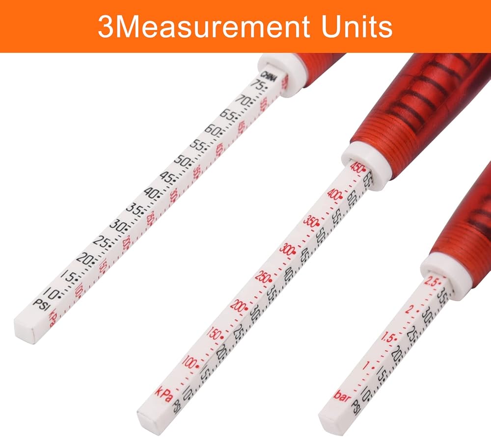 صناعة شديدة التحمل - مقاييس الإطارات مصممة بجسم ABS ورأس من الكروم عالي التحمل، تم تصميم كل مقياس ضغط إطارات السيارة والدراجة من أجل متانة وراحة تدوم طويلاً. التصميم المدمج أكثر ملاءمة للتخزين على طاولة العمل أو الجيب أو الحمل.