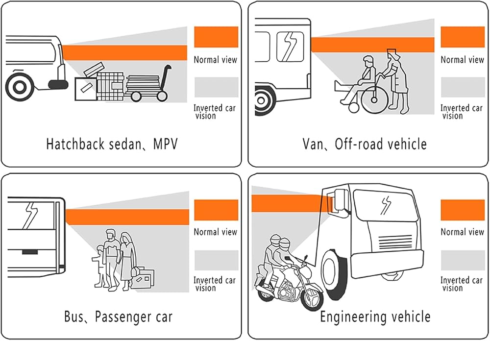 • ACCIDENTS REDUCE & VISIBILITY INCREASE: Focal length: -330mm. Expand up to 13 degrees, down 27 degrees, 25 degrees on both sides. Eliminates rearview blind spots and increases safety. Avoid accidents due to the children, pets and other low-lying objects in blind spot behind your vehicle while parking.