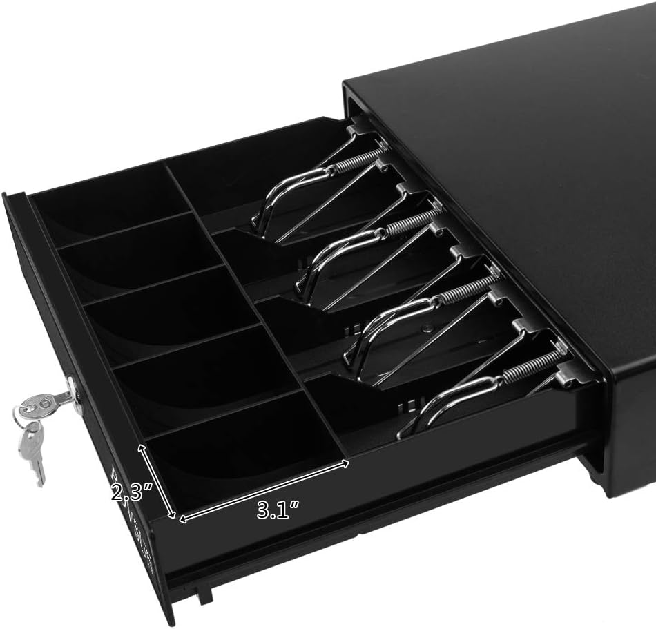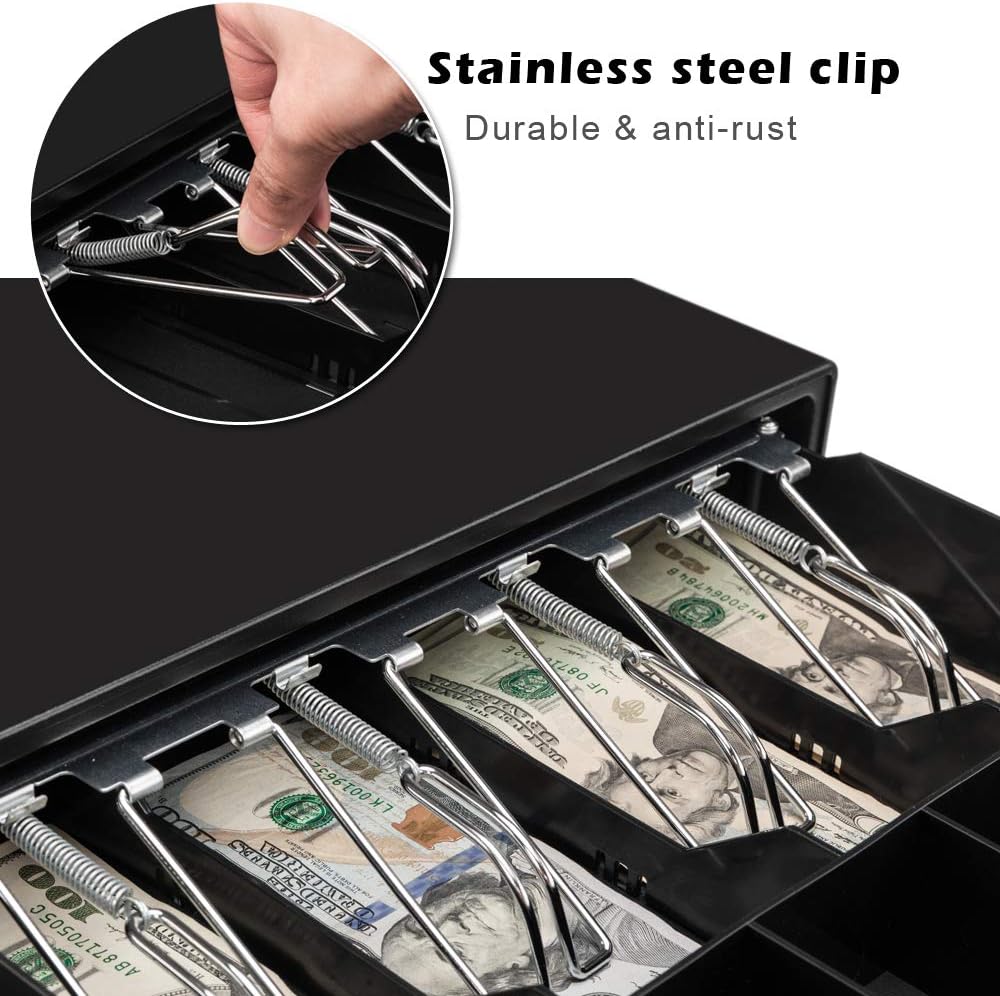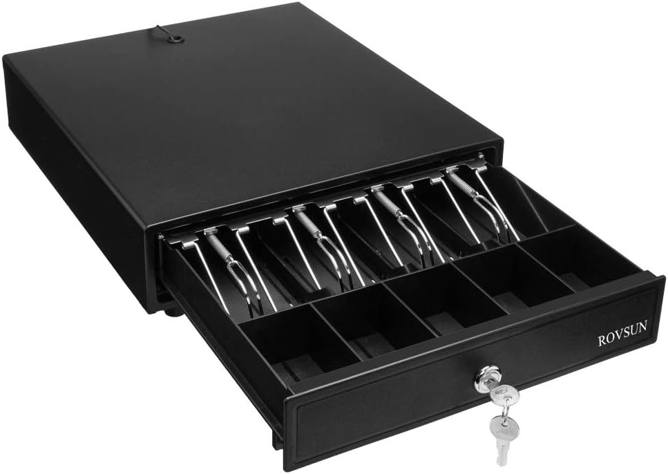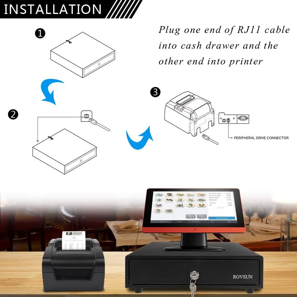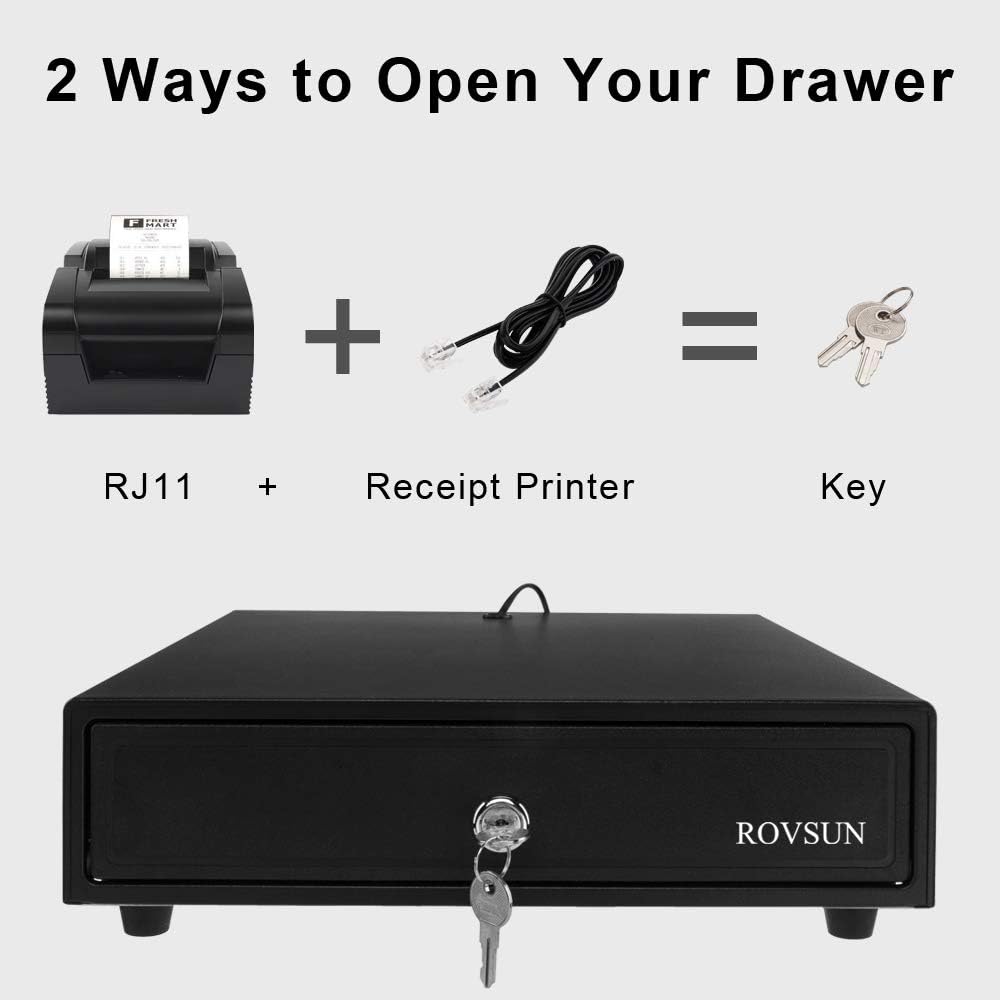 درج تسجيل النقدية من ROVSUN مزود بـ 4 فواتير و5 عملات معدنية، وصينية صندوق تخزين الأموال مع قفل، وتتطلب طابعة إيصالات كابل RJ11، مثالية للأعمال التجارية الصغيرة في نقاط البيع (13 بوصة × 15 بوصة)