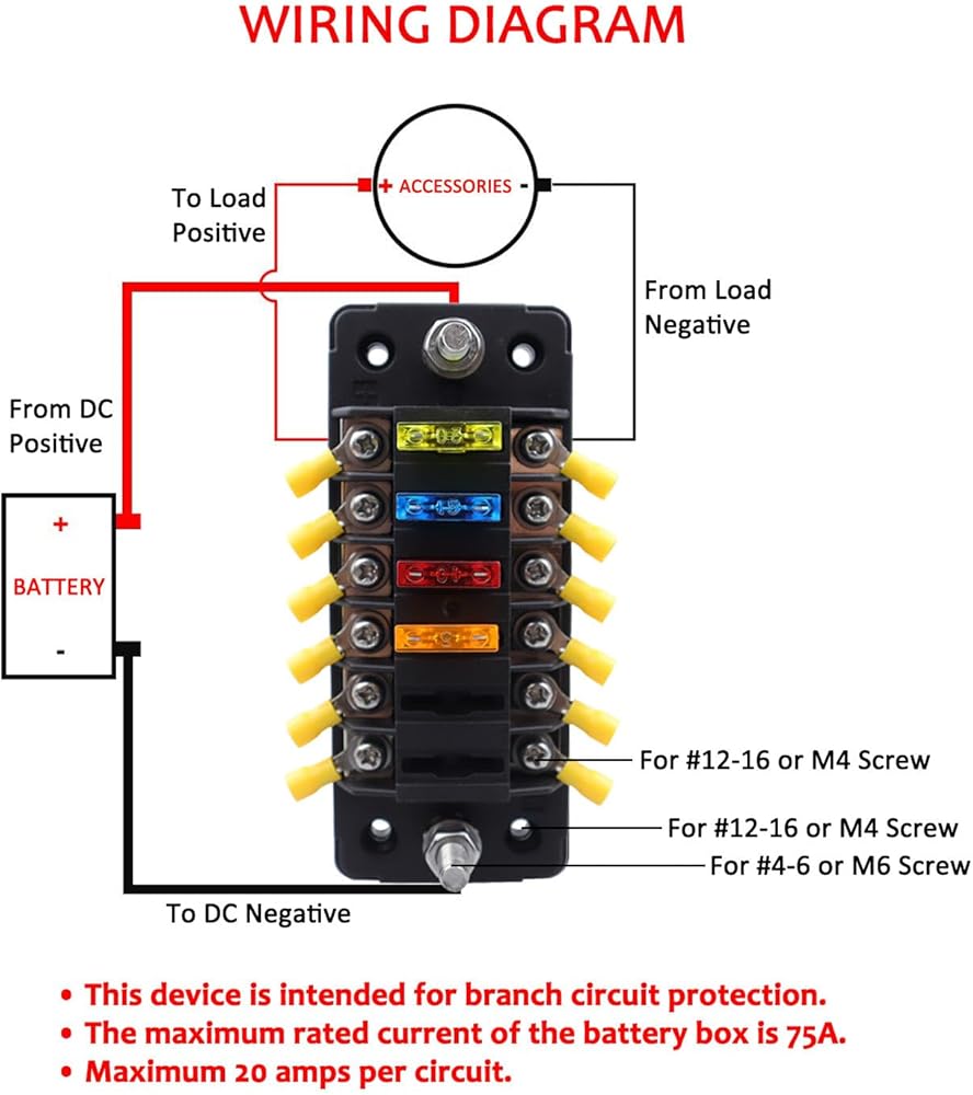 Maximum Amperage: 75A Per Block/ 20A Per Circuit