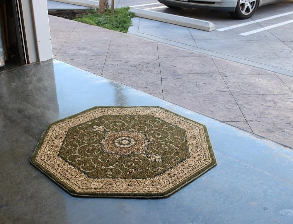This classic octagon area rug will serve as a beautiful focal point in your house hallway, entrance, kitchen etc. This rug is made in Turkey from 100% olefin (polypropylene) that is durable stain resistant and easy to clean and maintain.
