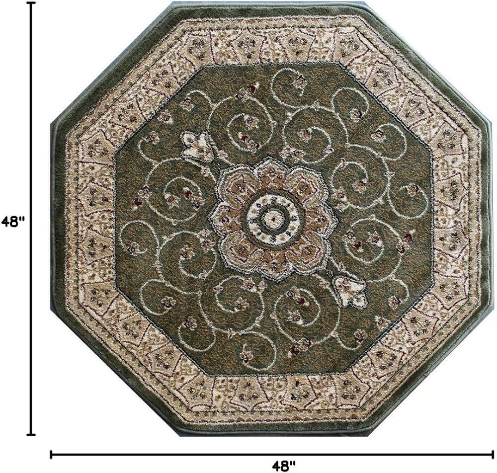 تصميم سجادة منطقة مثمنة تقليدية 404 أخضر (4 أقدام × 4 أقدام) مثمن
