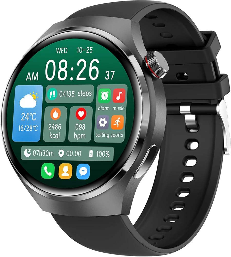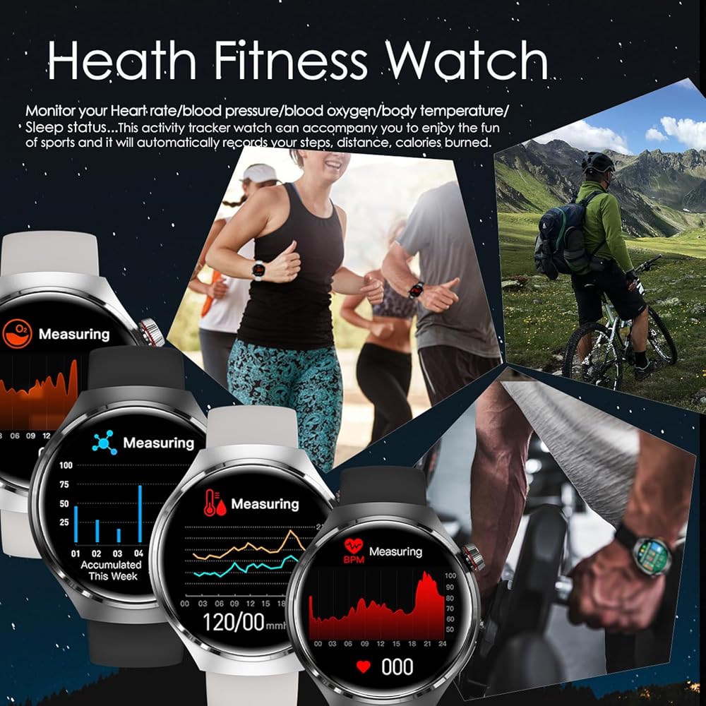 【ساعة ذكية متعددة الوظائف مقاومة للماء】توفر ساعة أندرويد الذكية العديد من الوظائف المفيدة مثل الآلة الحاسبة والطقس ومشغل الموسيقى والكاميرا عن بعد والبوصلة وضغط الارتفاع وساعة المنبه والتقويم ومساعد الصوت والمؤقت وإعداد كلمة المرور والتنفس وساعة التوقف وتحديد المفتاح، إعداد الوقت، NFC، إلخ. الساعة الذكية المقاومة للماء IP68 ليس لديها مشكلة في غسل يديها والركض تحت المطر (ولكنها لا تدعم السباحة والغوص والاستحمام/الساونا وما إلى ذلك).