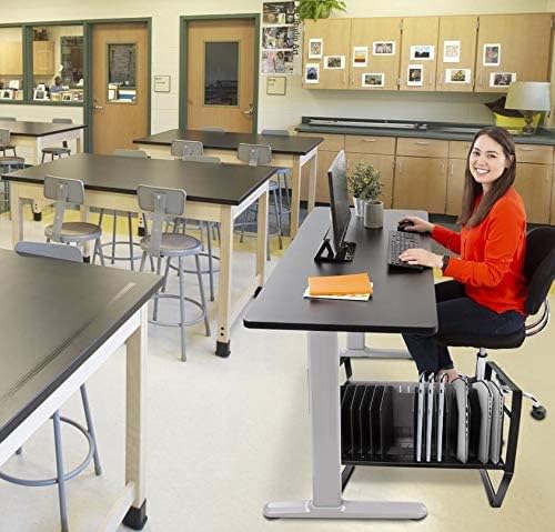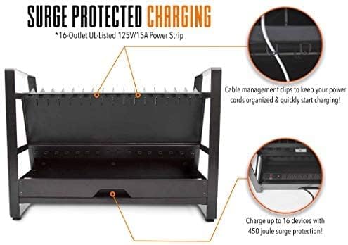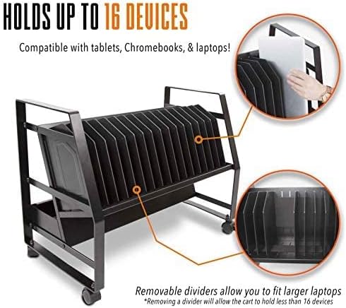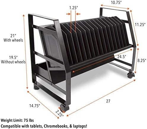 عربة شحن مفتوحة لـ Line Leader 16 جهازًا لأجهزة الكمبيوتر المحمولة والأجهزة اللوحية وأجهزة Chromebook، ومحطة كمبيوتر محمول محمولة، وعجلات قابلة للإزالة لاستخدام سطح المكتب، وشريط طاقة مدرج في قائمة UL (أسود، 27 بوصة × 14.75 بوصة × 21 بوصة)