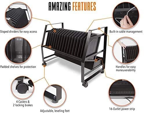 قوة شحن الأجهزة - يمكن لهذه العربة شحن ما يصل إلى 16 جهازًا في وقت واحد، بما في ذلك أجهزة الكمبيوتر المحمولة وأجهزة Chromebook والأجهزة اللوحية. يتميز بشريط طاقة ذو 16 منفذًا ومشابك لإدارة الأسلاك لتوفير الراحة. يمكن إزالة الفواصل لاستيعاب الأجهزة الإلكترونية الأكبر حجمًا.