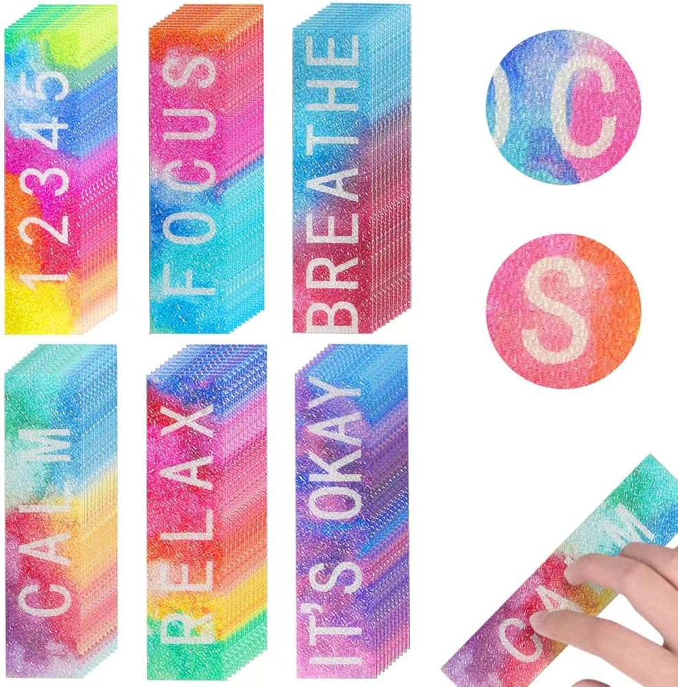 • هدية مثالية: شرائطنا اللاصقة الحسية مثالية كهدية للأطفال الذين يعانون من القلق وغيرهم من الذين يعانون من القلق والتوتر أو اضطرابات المزاج. ستوفر لهم ملصقات القلق هذه تخفيفًا للتوتر، وتتحكم في قلقهم وتحسن تركيزهم. امنح هذه الهدية الخاصة لطفل قريب منك يعاني من القلق، أنا متأكد من أنه سيحبها لمنع ملصقات التململ!