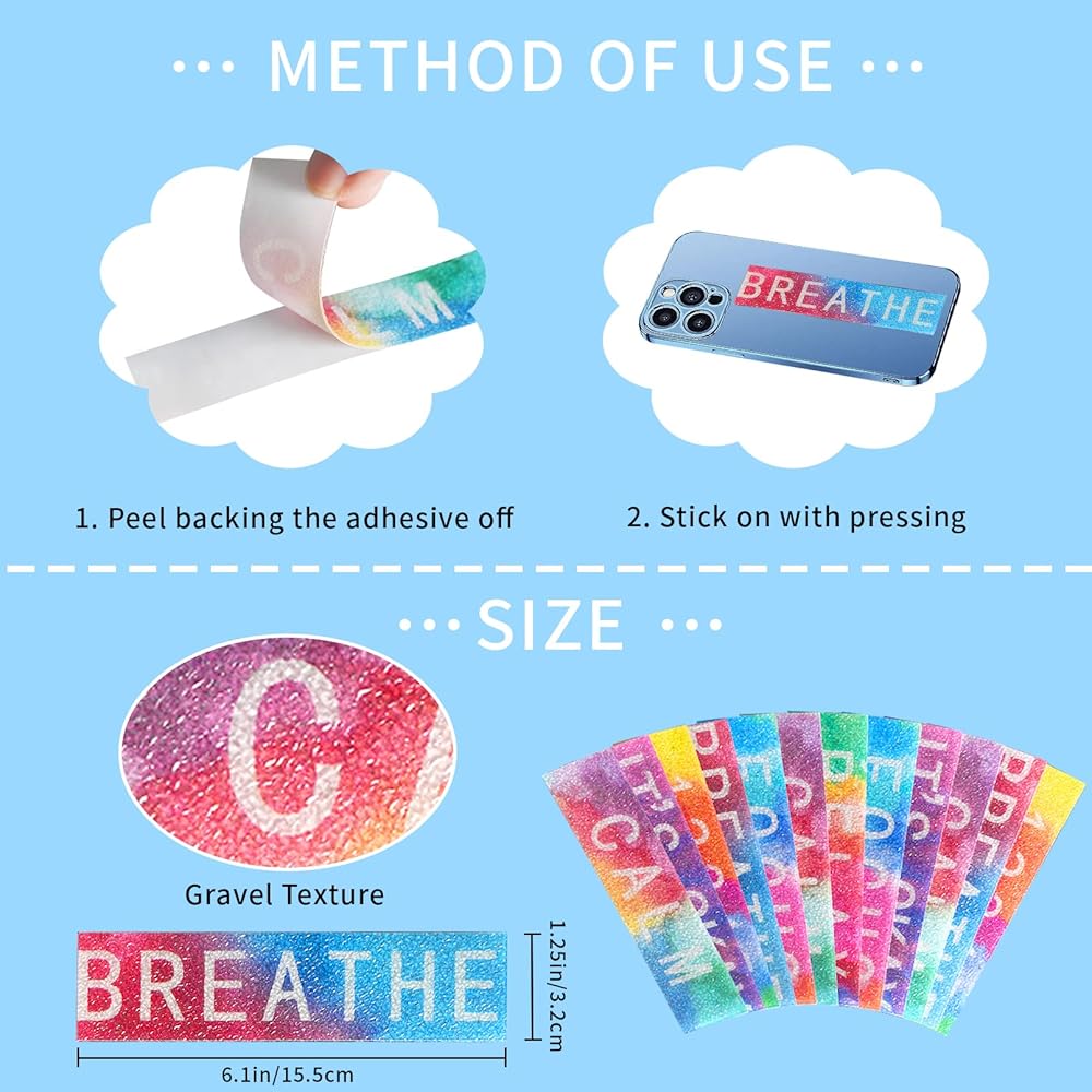• لا تترك أي بقايا: تتميز الملصقات الحسية القابلة لإعادة الاستخدام بمادة لاصقة قوية للغاية على الظهر، ويمكنك لصق الشرائط الحسية المضادة للضغط على معظم الأماكن التي تريدها، مثل حافظات الهاتف وأجهزة الكمبيوتر وأجهزة الكمبيوتر المكتبية والأكواب وأجهزة الكمبيوتر المحمولة وغيرها من الأسطح المسطحة والناعمة. ليس من السهل ترك علامات وأوساخ بعد إزالتها.