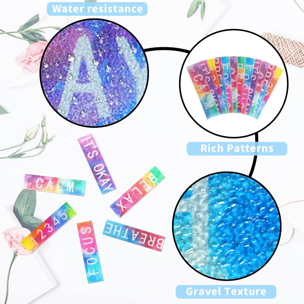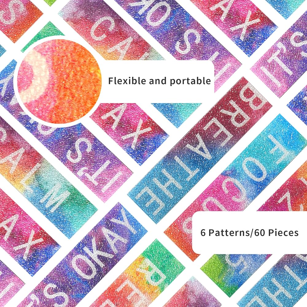 60 قطعة من الملصقات الحسية للقلق تململ شرائط مزخرفة هادئة ألعاب مضادة للإجهاد عن طريق اللمس الخام الحسية الهادئة شرائط لاصقة لتخفيف القلق للبالغين والمراهقين ومكتب الهاتف والفصول الدراسية، كلاسيكية