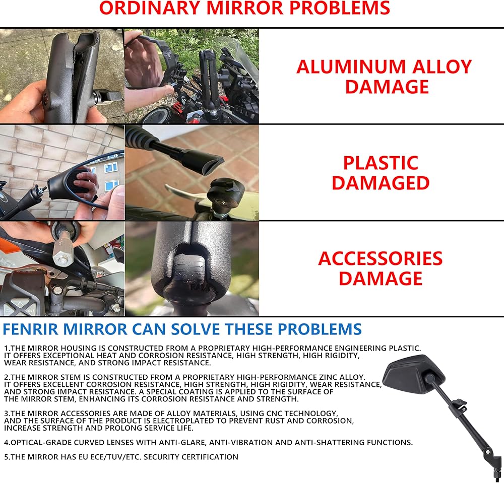 مرايا جانبية للدراجات النارية من FENRIR، وظيفة قابلة للطي غير قابلة للتدمير، عدسات منحنية مضادة للوهج، تصميم مضاد للاهتزاز قابل للتعديل، مصممة للمغامرة على الطرق الوعرة، جولة في شارع إندورو (801-0118)