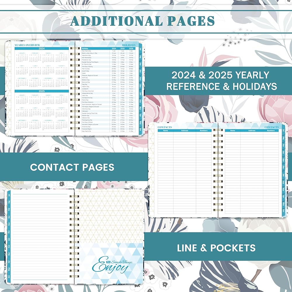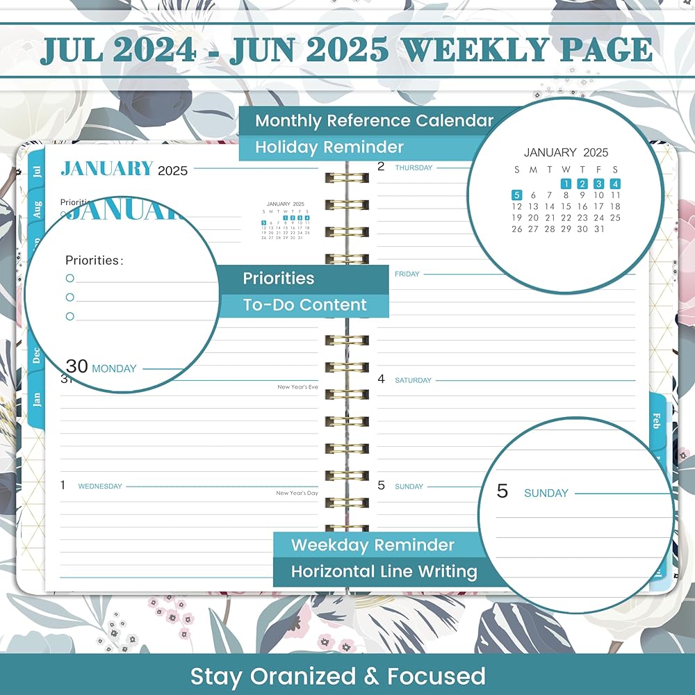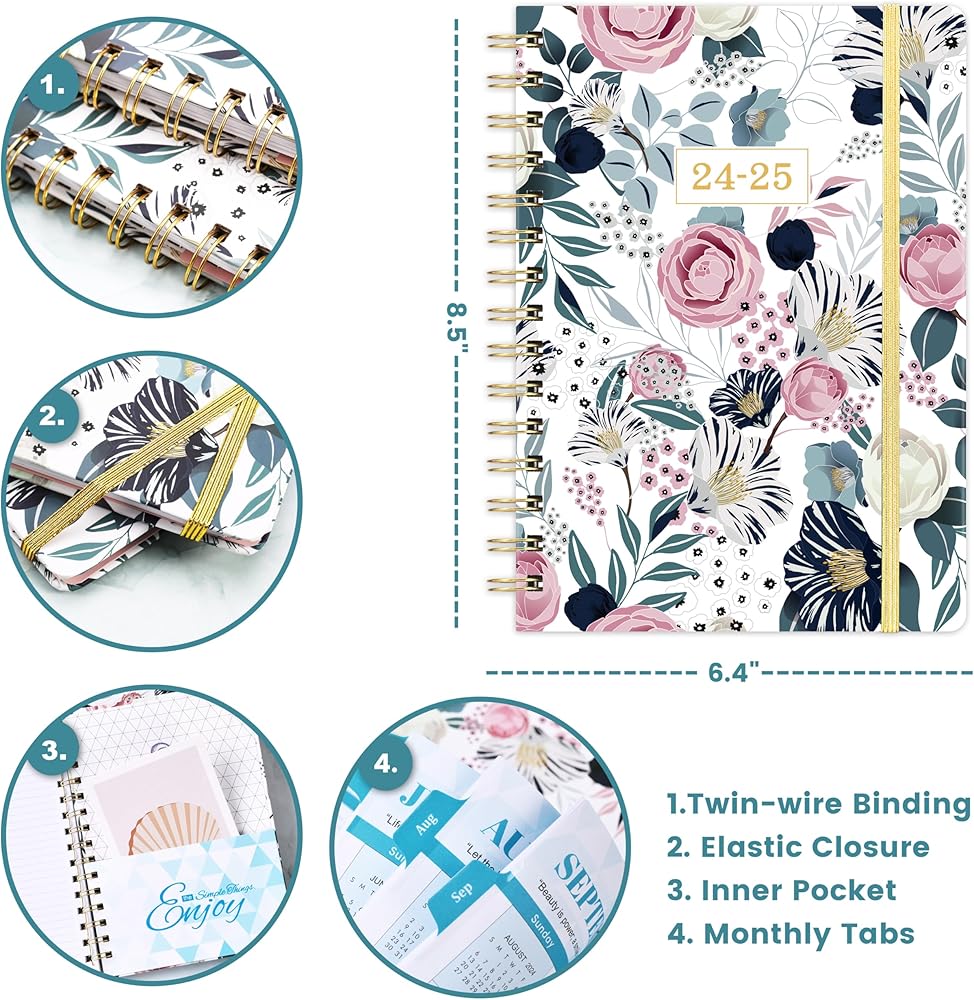 🌼 مخطط 2024-2025 - يغطي هذا المخطط الأسبوعي والشهري 2024-2025 12 شهرًا من يوليو 2024 إلى يونيو 2025، بمقاس 6.3 بوصة × 8.4 بوصة، وحجم مناسب للتخطيط اليومي والجداول الزمنية، وهو مريح للحمل.