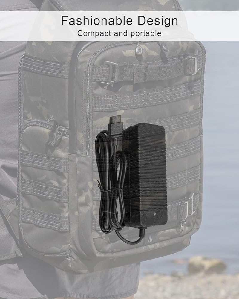 • الشحن أثناء التنقل: يتميز الشاحن السريع الخاص بنا بتصميم أنيق وصغير الحجم، مما يجعله سهل الحمل للغاية. يشغل مساحة صغيرة، مما يسمح لك بحمله دون عناء، مما يضمن أنه بغض النظر عن المكان الذي يأخذك إليه سكوترك الكهربائي، فإن لديك حل شحن موثوقًا به