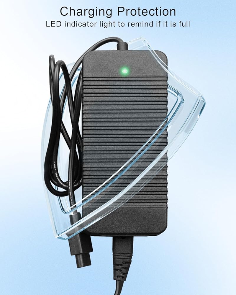 • الحماية من الشحن الزائد: الشاحن السريع الخاص بنا مجهز بحماية متقدمة من الشحن الزائد، مما يضمن شحن بطارية السكوتر الخاصة بك بأفضل طريقة ممكنة دون التعرض لخطر الشحن الزائد. لا تعمل هذه الميزة على إطالة عمر البطارية فحسب، بل تضمن أيضًا تجربة شحن آمنة