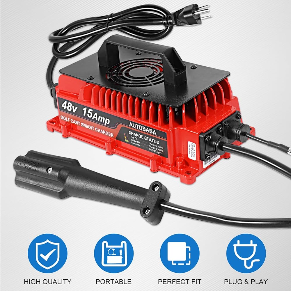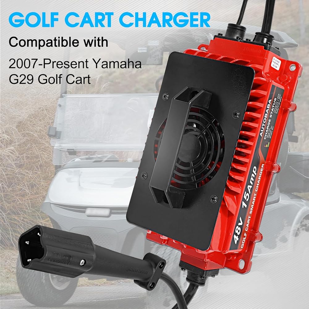 • 【الإعداد】: شاحن بطارية عربة الجولف 48 فولت 15 أمبير متوافق مع عربة الجولف Yamaha G29 Drive & Drive 2 2007-2024. إنه حل الشحن المثالي لنماذج عربات الجولف المحددة هذه.