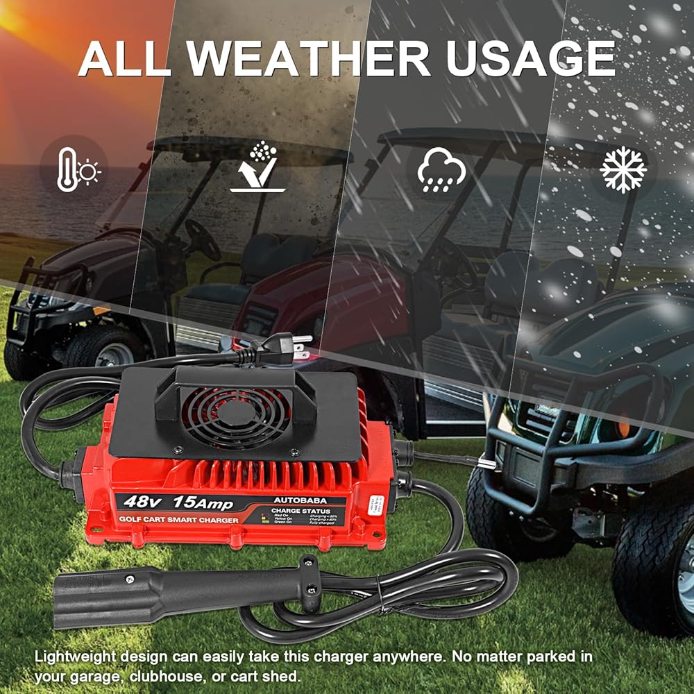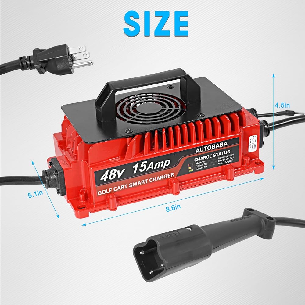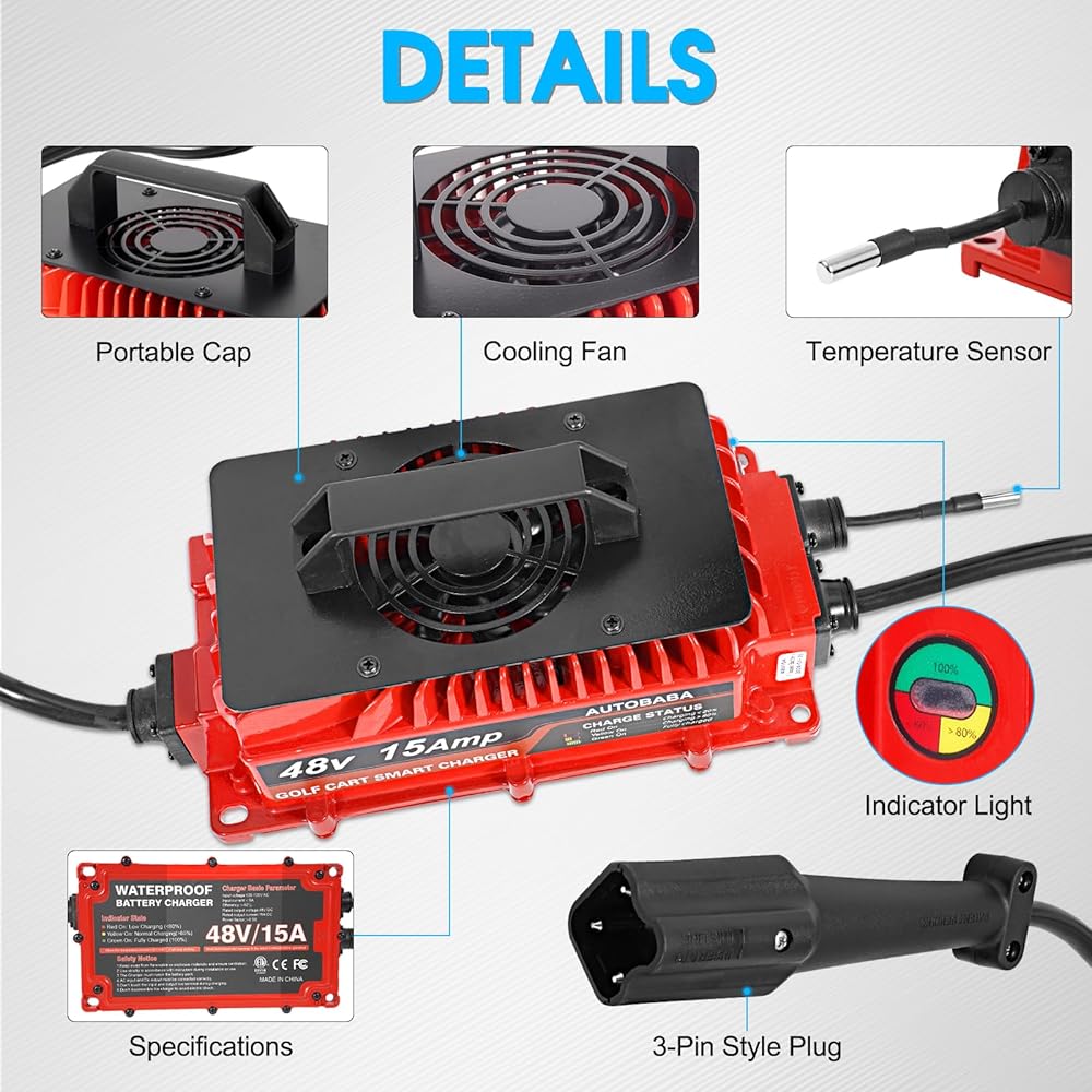 شاحن بطارية عربة الجولف 48 فولت 15 أمبير، قابس ذو 3 دبابيس مع مستشعر درجة الحرارة، شاحن عربة النادي المحمول 48 فولت 15 أمبير متوافق مع 2007-2024 Yamaha G29 Drive & Drive 2 عربة الجولف