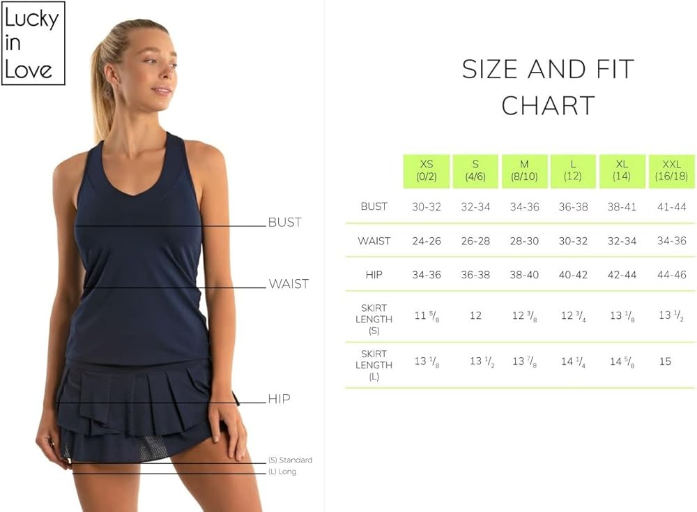 LAYERED SKIRT: Multi-layered scallops with mesh under liner for maximum breathability and ease and fit. Slight A-line shape flatters the women's body.