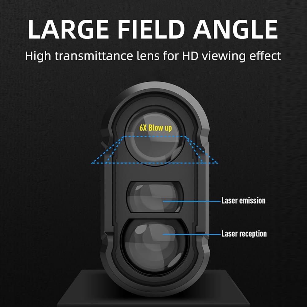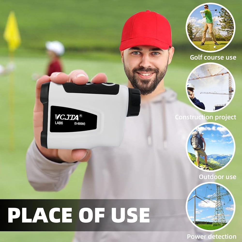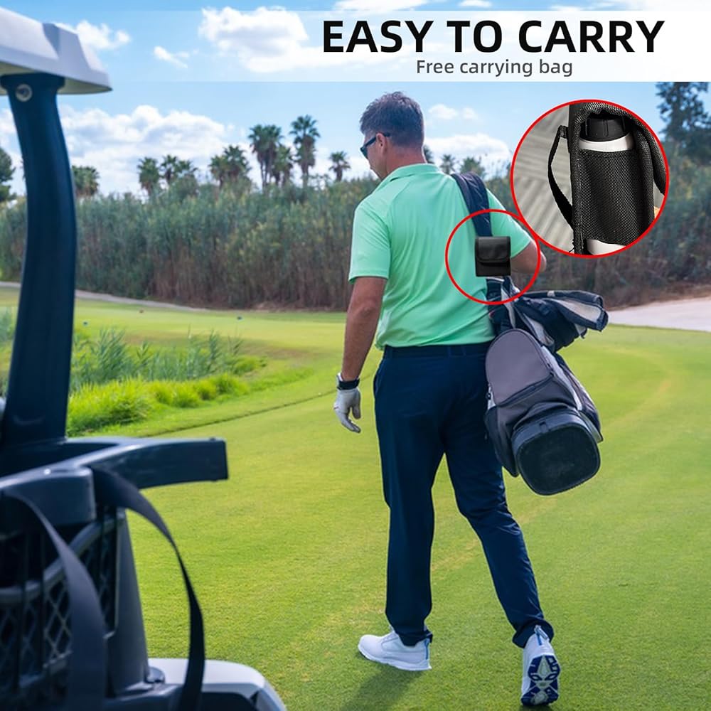 • صغير الحجم وقابل للحمل: مصمم ليكون صغير الحجم وخفيف الوزن، يمكن أن يتناسب محدد نطاق الجولف هذا بسهولة في جيبك أو حقيبة الجولف، مما يسمح لك بأخذه إلى أي مكان.